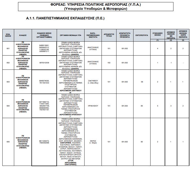 Απεστάλη στο Εθνικό Τυπογραφείο για δημοσίευση η προκήρυξη3Κ/2026 του ΑΣΕΠ για την πλήρωση με σειρά προτεραιότητας 43 θέσεων μόνιμου προσωπικού της κατηγορίας Πανεπιστημιακής Εκπαίδευσης, κλάδου ΠΕ Ηλεκτρονικών Μηχανικών Ασφάλειας Εναέριας Κυκλοφορίας (ΗΜΑΕΚ), πρώην ΠΕ Ηλεκτρονικών (A.T.S.E.P.-Air Traffic Safety Electronics Personnel) στην Υπηρεσία Πολιτικής Αεροπορίας (Υ.Π.Α.)-Υπουργείο Υποδομών και Μεταφορών, σύμφωνα με τις διατάξεις του άρθρου 28 του ν.4765/2021 (Α΄6), όπως ισχύει.