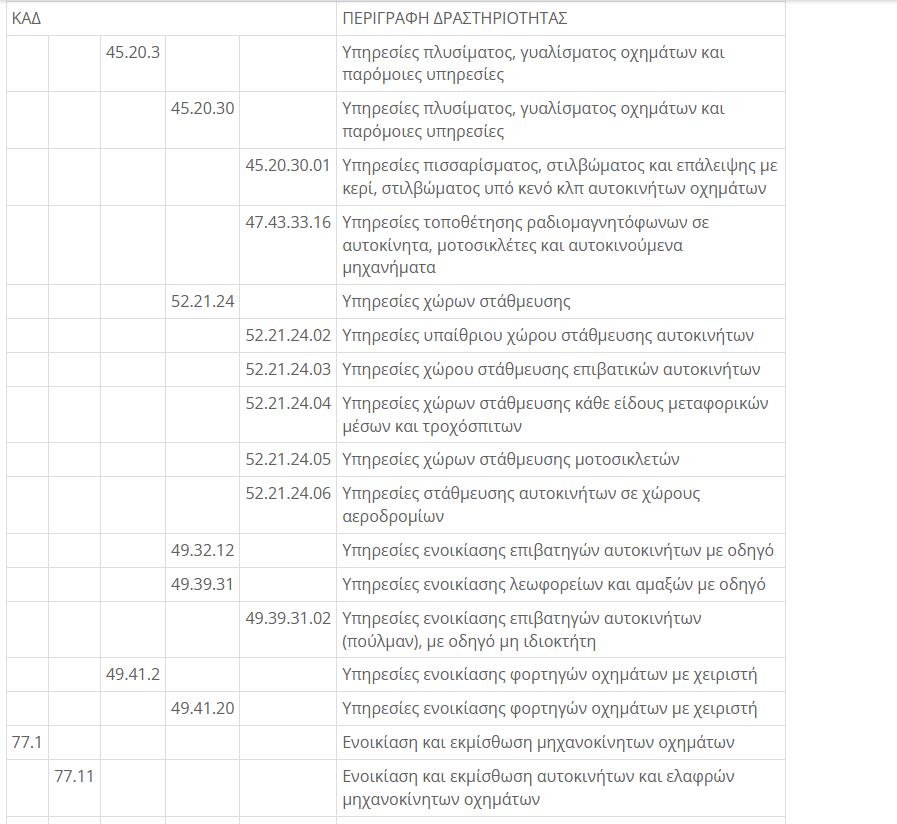 Οντότητες του άρθρου 1 του ν. 4308/2014 (Α’ 251), που δραστηριοποιούνται στους κλάδους συνεργείων επισκευής και συντήρησης οχημάτων, φανοποιείων, τοποθέτησης συναγερμών, ηχοσυστημάτων και οργάνων σε οχήματα, χώρων στάθμευσης, πλυντηρίων και επιχειρήσεων ενοικίασης αυτοκινήτων, μοτοσικλετών (δίτροχων, τρίτροχων, τετράτροχων), μοτοποδηλάτων, επιβατικών οχημάτων που προορίζονται για επαγγελματική ή προσωπική χρήση, επαγγελματικών οχημάτων, γεωργικών και λοιπών αυτοκινούμενων μηχανημάτων σύμφωνα με τους Κωδικούς Αριθμούς Δραστηριότητας του Παραρτήματος της παρούσας, το οποίο και αποτελεί αναπόσπαστο μέρος αυτής και ανεξάρτητα αν αυτοί αντιστοιχούν σε κύρια ή δευτερεύουσα δραστηριότητά τους, υποχρεούνται να τηρούν Ψηφιακό Πελατολόγιο.