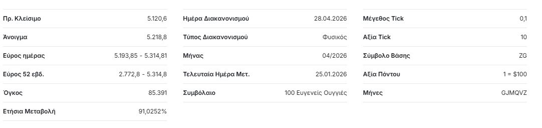 Πάντως νωρίτερα η τιμή spot του χρυσού αυξήθηκε 1,1% και ανήλθε στα 5.243,58 δολάρια ανά ουγγιά, σημειώνοντας μια άνοδο άνω του 20% από την έναρξη του τρέχοντος έτους.