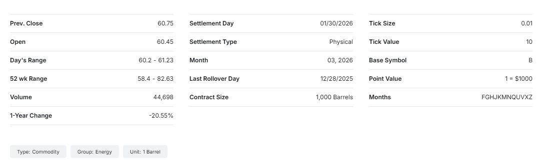 Τα συμβόλαια μελλοντικής εκπλήρωσης αργού πετρελαίου Brent είναι αυξημένα κατά 0,1% τον πρώτο μήνα του έτους δηλαδή στα 60,79 δολάρια/βαρέλι είπε μεταξύ άλλων.