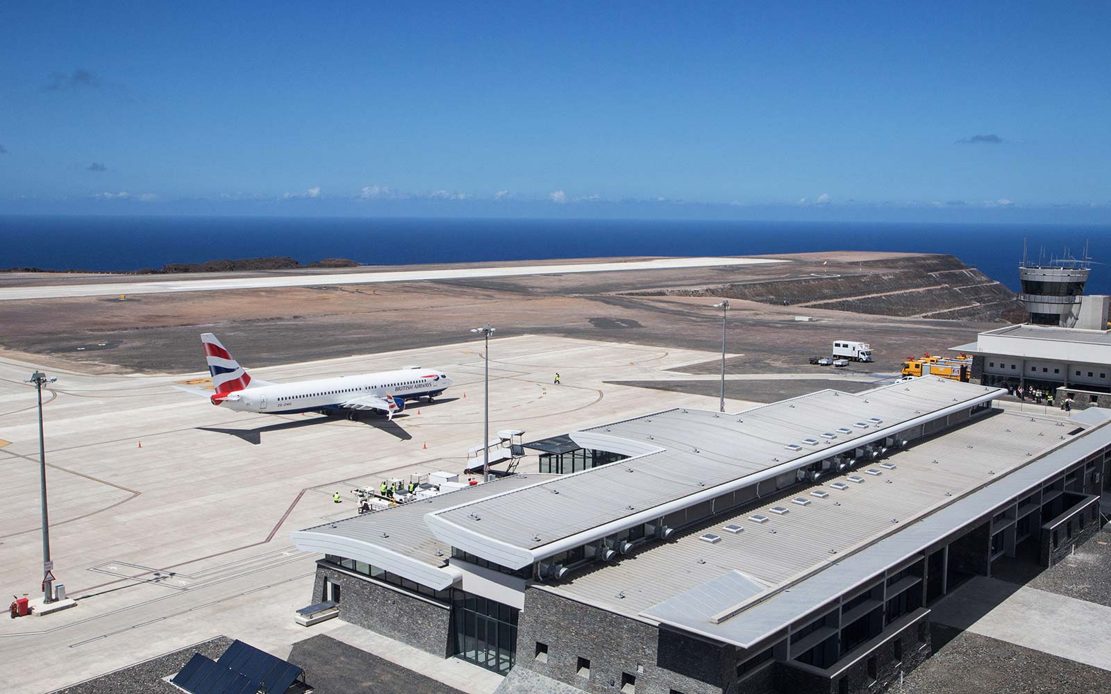 Καθώς το αεροσκάφος, στην εναρκτήρια πτήση από το Γιοχάνεσμπουργκ, προσγειώθηκε στο νησί, υπερπόντιο έδαφος του Ηνωμένου Βασιλείου, οι επιβαίνοντες, λάτρεις των ταξιδιών και της ιστορίας, χειροκρότησαν και ζητωκραύγασαν.