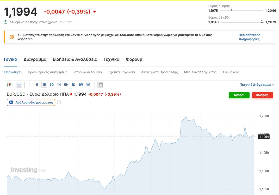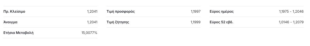 Μάλιστα σύμφωνα με το investing.com, σήμερα στις 10.33 π.μ ώρα Ελλάδας το νόμισμα υποχώρησε στα 1,994 δολάρια ανά ευρώ καταγράφοντας μια πτώση της τάξεως του 0,39% σε σχέση με το άνοιγμα του (1,2041 δολάρια ανά ευρώ).