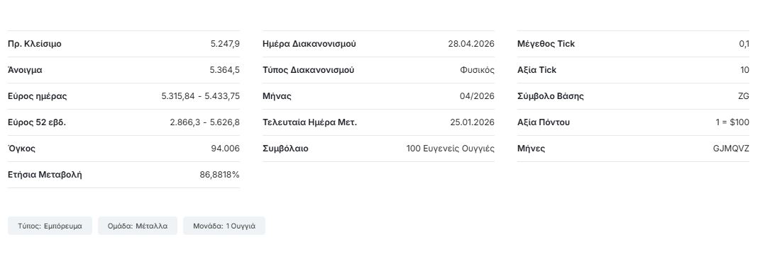 Εάν το πολύτιμο μέταλλο “σπάσει” αποφασιστικά  το φράγμα των 5.430 δολαρίων ανά ουγγιά, τότε θα ανοίξει πλήρως ο δρόμος για την επανεξέταση του υψηλού της 28ης Ιανουαρίου στις 5.415 δολάρια ανά ουγγιά και του ρεκόρ της 29ης Ιανουαρίου στα 5.600 δολάρια ανά ουγγιά. Αυτό θα συμβεί σε περίπτωση που κλιμακωθεί ο πόλεμος στο Ιράν.