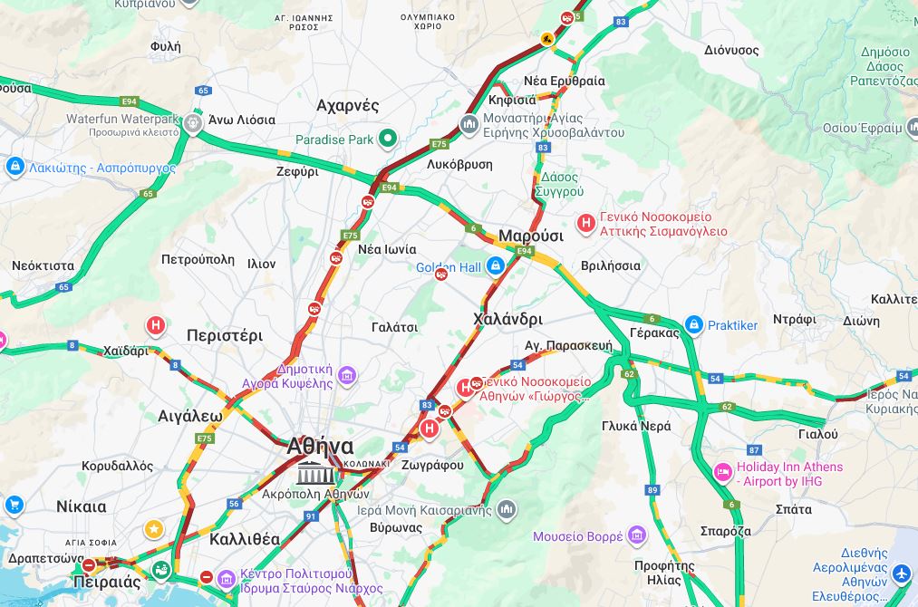 LIVE η κίνηση: Κυκλοφοριακό «χάος» σε Κηφισό και στο κέντρο της Αθήνας – Καθυστερήσεις και στην Αττική Οδό