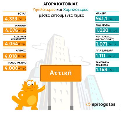 Αναλυτικότερα, το γ’ τρίμηνο του 2022 υψηλότερη μέση ζητούμενη τιμή πώλησης σημειώθηκε στα Νότια (3.167 €/τ.μ.) και Βόρεια (2.628 €/τ.μ.) προάστια της Αθήνας και τις Κυκλάδες (2.963 €/τ.μ.). Παράλληλα, ανοδική τάση της μέσης ζητούμενης τιμής στην πώληση κατοικίας σε σχέση με πέρυσι παρατηρείται στον Πειραιά (13,4%) λόγω και της αναβάθμισης της ευρύτερης περιοχής καθώς το κέντρο του αποκτά πρόσβαση στο ταχύτερο και ασφαλέστερο μέσο μαζικής μεταφοράς, το Μετρό, ενώ σημαντική αύξηση παρατηρείται και στην Χαλκιδική (12%) και τις Σποράδες (11,5%), μετά από μια χρονιά με ρεκόρ επισκεπτών από το εξωτερικό.