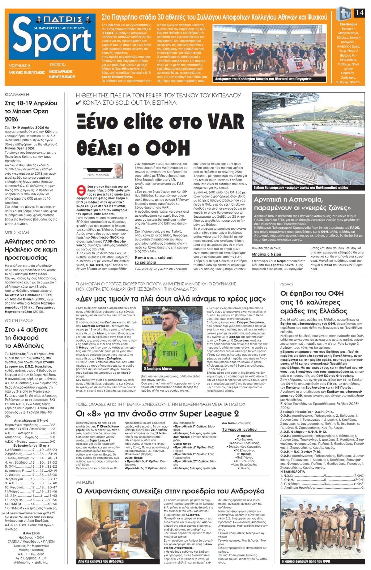 share Οι αθλητικές εφημερίδες 10/4/2026 δημοσιεύτηκε: 08:50 , 10 Απριλίου 2026 Επικαιρότητα Διαβάστε τα πρωτοσέλιδα από τις αθλητικές εφημερίδες, σήμερα 10/4/2026. #ΑΘΛΗΤΙΚΕΣ ΕΦΗΜΕΡΙΔΕΣ #ΕΦΗΜΕΡΙΔΕΣ #ΠΡΩΤΟΣΕΛΙΔΑ share Σχόλια Αναγνωστών σχολίασε και εσύ Ακολουθήστε το στο Google News και μάθετε πρώτοι όλες τις ειδήσεις Δείτε όλες τις τελευταίες Ειδήσεις από την Ελλάδα και τον Κόσμο στο Ροή Οικονομία Επιχειρήσεις Επικαιρότητα 39 λεπτά πριν Αυτοκίνητο: Χρήσιμες συμβουλές για να το φορτώσετε σωστά και με ασφάλεια πριν από το ταξίδι 1 ώρα πριν e-ΔΛΑ: Τι αλλάζει στην ηλεκτρονική εφαρμογή 5 ώρες πριν Κορυφώνονται οι πασχαλινές αγορές: Πώς θα λειτουργήσουν σήμερα και αύριο τα καταστήματα σε Αθήνα,... 5 ώρες πριν Κορυφώνονται οι πασχαλινές αγορές: Πώς θα λειτουργήσουν σήμερα και αύριο τα καταστήματα σε Αθήνα,... 15 ώρες πριν Τράπεζες: Κλειστές από αύριο έως και τη Δευτέρα του Πάσχα -Τι θα ισχύσει για τις συναλλαγές 16 ώρες πριν ΔΥΠΑ: 800 θέσεις εργασίας από 30 επιχειρήσεις – Αναλυτικά οι ειδικότητες 2 ημέρες πριν ΑΔΜΗΕ: Στα 304 εκατ. ευρώ τα λειτουργικά κέρδη το 2025-Δείτε αναλυτικά τα στοιχεία 4 ημέρες πριν ΔΕΗ: Ολοκληρώθηκε η κατασκευή των φωτοβολταϊκών σταθμών ισχύος 2,13 GW στη Δυτική Μακεδονία 5 ημέρες πριν Euronext Athens: Το νέο στοίχημα, τα οφέλη της αναβάθμισης και οι επιφυλάξεις 1 ώρα πριν e-ΔΛΑ: Τι αλλάζει στην ηλεκτρονική εφαρμογή 2 ημέρες πριν Γιατρός: Τι αλλάζει με την τροποποίηση του συστήματος παραπομπών και πώς θα κλείνουμε ραντεβού... 3 ημέρες πριν Πάσχα 2026: Σε ποιους επιστρέφονται οι άδειες οδήγησης ENIKOS NETWORK Χαβάη: Εντυπωσιακές εικόνες από την έκρηξη του ηφαιστείου Κιλαουέα – Λάβα εκτοξεύτηκε σε ύψος 190 μέτρων ΑΠΘ: Αποσωληνώθηκε ο 19χρονος φοιτητής που είχε προσβληθεί από μικροβιακή μηνιγγίτιδα – Τα νεότερα για την υγεία του ΠΟΕΔΗΝ: Θετική εξέλιξη για την πορεία της υγείας του 19χρονου φοιτητή με μηνιγγίτιδα Καθηγητής εξηγεί τι κάνει για να προστατευτεί από τον καρκίνο: «Αρκούν δυο κινήσεις» Σταθερότητα στο Καθιερωμένο Πρότυπο: Η νέα μέτρηση της μάζας του μποζονίου W Τέλος εποχής για τα παλαιότερα Kindle της Amazon περισσότερα 20:20 , 25 Μαρτίου 2026 || ΑΑΔΕ: Εξαρθρώθηκε διεθνές δίκτυο λαθρεμπορίου τσιγάρων – Το modus operandi και οι «tobacco mules» Ένα οργανωμένο και πολυεπίπεδο διεθνές δίκτυο που δραστηριοποιούνταν στο λαθρεμπόριο τσιγάρων, εξ... 09:30 , 22 Μαρτίου 2026 || Με τη Realnews που κυκλοφορεί: Instyle – Μαζί Drive Αυτή την Κυριακή με τη Realnews: Instyle – Μαζί Drive InStyle Η Βάσω Λασκαράκη, ο Jude Law, ο Γι... 09:10 , 12 Ιανουαρίου 2026 || Καιρός: Χιόνια και πολικές θερμοκρασίες σήμερα – Η πρόγνωση της ΕΜΥ Έντονο κύμα ψύχους θα επικρατήσει στη χώρα τη Δευτέρα με χαμηλές θερμοκρασίες. Χιονοπτώσεις αναμέ... 09:03 , 8 Δεκεμβρίου 2025 || Καιρός: Ισχυρές βροχές και καταιγίδες στην Κρήτη σήμερα – Αναλυτική πρόγνωση ανά περιοχή Ισχυρές βροχές και καταιγίδες προβλέπονται σήμερα, Δευτέρα 8 Δεκεμβρίου 2025 στη βόρεια Κρήτη σύμ... 15:10 , 23 Νοεμβρίου 2025 || Αυτή την Κυριακή με τη Realnews: Δωροεπιταγή 10€ Δωροεπιταγή αξίας 10€ για αγορές άνω των 60€ από τα πολυκαταστήματα Factory Outlet. H προσφορά ισ... 09:40 , 23 Νοεμβρίου 2025 || Αυτή την Κυριακή με τη Realnews: Instyle, μαζί Drive Αυτή την Κυριακή με τη Realnews: Instyle, μαζί Drive Instyle Η Κατερίνα Παπουτσάκη, η Helena Bac... 17:49 , 24 Σεπτεμβρίου 2025 || Ελληνικές Υπεραγορές Σκλαβενίτης: Τι απαντά για το πρόστιμο ύψους 1,44 εκατ. ευρώ Ανακοίνωση εξέδωσε η “Ελληνικές Υπεραγορές Σκλαβενίτης” σχετικά με το πρόστιμο ύψους ... 10:16 , 21 Σεπτεμβρίου 2025 || Σήμερα με τη Realnews: Ins