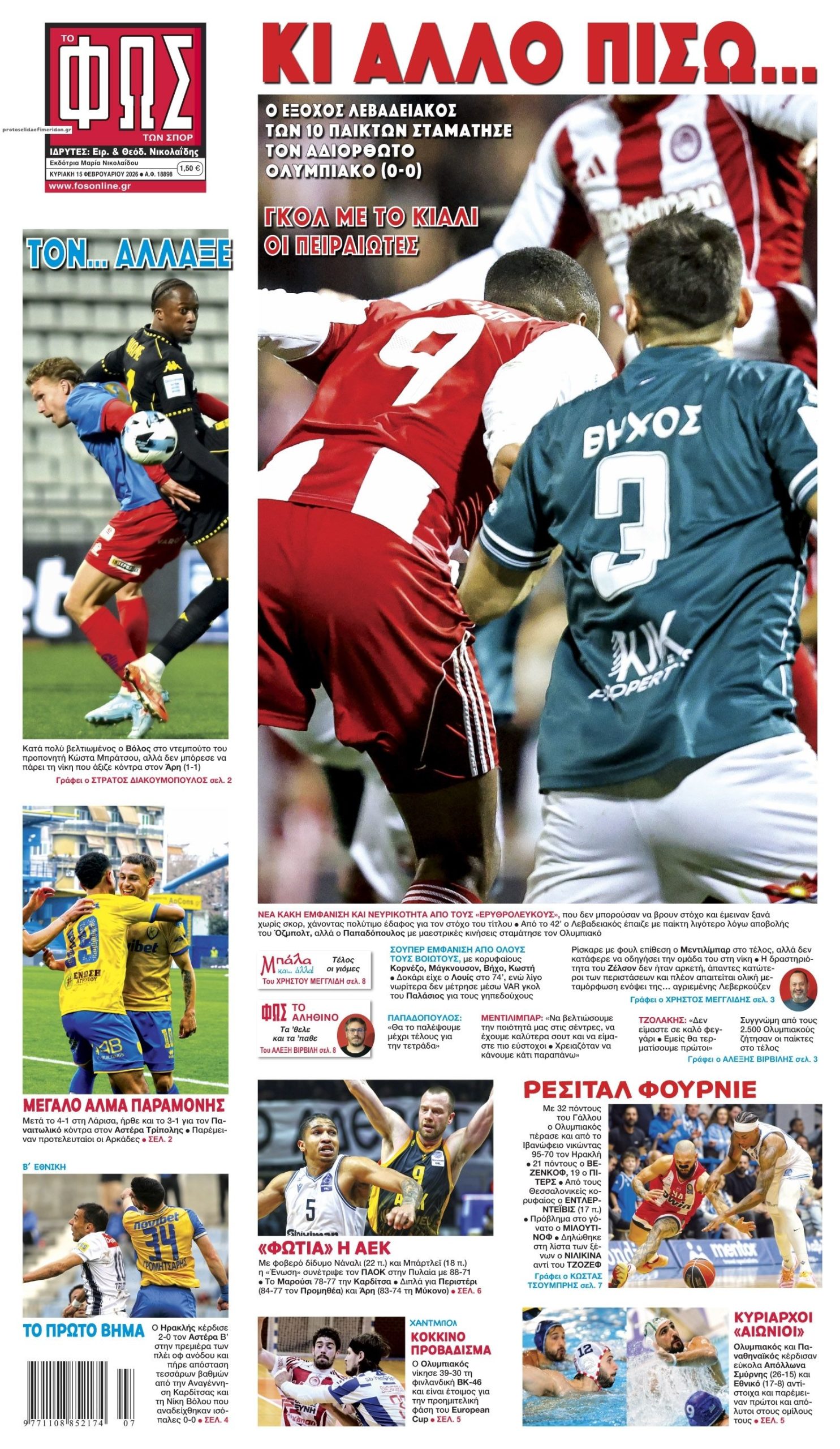 share Οι αθλητικές εφημερίδες 15/2/2026 δημοσιεύτηκε: 08:35 , 15 Φεβρουαρίου 2026 Επικαιρότητα Διαβάστε τα πρωτοσέλιδα από τις αθλητικές εφημερίδες, σήμερα 15/2/2026. #ΑΘΛΗΤΙΚΕΣ ΕΦΗΜΕΡΙΔΕΣ #ΕΦΗΜΕΡΙΔΕΣ #ΠΡΩΤΟΣΕΛΙΔΑ share Σχόλια Αναγνωστών σχολίασε και εσύ Ακολουθήστε το στο Google News και μάθετε πρώτοι όλες τις ειδήσεις Δείτε όλες τις τελευταίες Ειδήσεις από την Ελλάδα και τον Κόσμο στο Ροή Οικονομία Επιχειρήσεις Επικαιρότητα 1 ώρα πριν POS και IRIS: Ποιες επιχειρήσεις κινδυνεύουν με τσουχτερά πρόστιμα 1 ώρα πριν Αυτή την Κυριακή με τη Realnews: Ένας βασιλικός φόνος της S.J. Bennett – Μαζί αστυνομικά best sellers 2 ώρες πριν ΑΔΜΗΕ: Τι σημαίνει για τους καταναλωτές και την αγορά η αύξηση μετοχικού κεφαλαίου 1 ώρα πριν POS και IRIS: Ποιες επιχειρήσεις κινδυνεύουν με τσουχτερά πρόστιμα 2 ώρες πριν ΑΔΜΗΕ: Τι σημαίνει για τους καταναλωτές και την αγορά η αύξηση μετοχικού κεφαλαίου 3 ώρες πριν «ΕΡΓΑΝΗ ΙΙ»: Σε πλήρη εφαρμογή από αύριο το νέο Πληροφοριακό Σύστημα – Οι αλλαγές και τα οφέλη 3 ημέρες πριν Υπερταμείο: Στα 12 δισ. ευρώ το χαρτοφυλάκιο – Ποιες κινήσεις έγιναν το 2025 5 ημέρες πριν ΕΛΤΑ: Αυτά είναι τα πρώτα 11 καταστήματα που κατεβάζουν ρολά 5 ημέρες πριν Καστέλλι: Προκηρύχθηκε ο διαγωνισμός για τα συστήματα αεροναυτιλίας -Όλα όσα είπε ο Δήμας 1 ώρα πριν Αυτή την Κυριακή με τη Realnews: Ένας βασιλικός φόνος της S.J. Bennett – Μαζί αστυνομικά best sellers 5 ώρες πριν Μητσοτάκης: «Ιστορική» συμφωνία για τις Συλλογικές Συμβάσεις Εργασίας και επιτάχυνση μεγάλων... 9 ώρες πριν Οι πολιτικές εφημερίδες 15/2/2026 ENIKOS NETWORK Στο έλεος των «μποφόρ» η Χίος: Σοβαρά προβλήματα στο νησί από τους θυελλώδεις ανέμους – ΦΩΤΟ και ΒΙΝΤΕΟ Καραμανλής: Η πορεία της Άννας Ψαρούδα στον δημόσιο βίο χαρακτηρίστηκε από ευγένεια, μετριοπάθεια, θεσμική υπευθυνότητα και... Hamnet: Η μυστηριώδης ασθένεια από την οποία έφυγε ο γιος του Shakespeare στα 11 του, σύμφωνα με την ταινία – Υπάρχει και σ... Έξυπνο εσώρουχο που κατέγραφε τα αέρια αποκάλυψε ότι αεριζόμαστε πάνω από 30 φορές την ημέρα – Τι έδειξε η μελέτη Επιστήμονες ονομάζουν συγχωνευόμενες υπερμεγέθεις μαύρες τρύπες από τοποθεσίες του «Άρχοντα των Δαχτυλιδιών» Κυκλοφόρησε η πρώτη Beta του Android 17 για συσκευές Pixel περισσότερα 09:10 , 12 Ιανουαρίου 2026 || Καιρός: Χιόνια και πολικές θερμοκρασίες σήμερα – Η πρόγνωση της ΕΜΥ Έντονο κύμα ψύχους θα επικρατήσει στη χώρα τη Δευτέρα με χαμηλές θερμοκρασίες. Χιονοπτώσεις αναμέ... 09:03 , 8 Δεκεμβρίου 2025 || Καιρός: Ισχυρές βροχές και καταιγίδες στην Κρήτη σήμερα – Αναλυτική πρόγνωση ανά περιοχή Ισχυρές βροχές και καταιγίδες προβλέπονται σήμερα, Δευτέρα 8 Δεκεμβρίου 2025 στη βόρεια Κρήτη σύμ... 15:10 , 23 Νοεμβρίου 2025 || Αυτή την Κυριακή με τη Realnews: Δωροεπιταγή 10€ Δωροεπιταγή αξίας 10€ για αγορές άνω των 60€ από τα πολυκαταστήματα Factory Outlet. H προσφορά ισ... 09:40 , 23 Νοεμβρίου 2025 || Αυτή την Κυριακή με τη Realnews: Instyle, μαζί Drive Αυτή την Κυριακή με τη Realnews: Instyle, μαζί Drive Instyle Η Κατερίνα Παπουτσάκη, η Helena Bac... 17:49 , 24 Σεπτεμβρίου 2025 || Ελληνικές Υπεραγορές Σκλαβενίτης: Τι απαντά για το πρόστιμο ύψους 1,44 εκατ. ευρώ Ανακοίνωση εξέδωσε η “Ελληνικές Υπεραγορές Σκλαβενίτης” σχετικά με το πρόστιμο ύψους ... 10:16 , 21 Σεπτεμβρίου 2025 || Σήμερα με τη Realnews: Instyle – Μαζί Drive Σήμερα με τη Realnews: Instyle, μαζί Drive Instyle Η Andie MacDowell, η Renate Reinsve και ο Οδυ... 12:05 , 7 Σεπτεμβρίου 2025 || Σήμερα με τη Realnews: Απόκρυφες τελετές της Debra Bokur – Μαζί Real taste & style Αυτή την Κυριακή με τη Realnews: Απόκρυφες τελετές της Debra Bokur, μαζί Real taste & style. ... 22:08 , 30 Αυγούστο