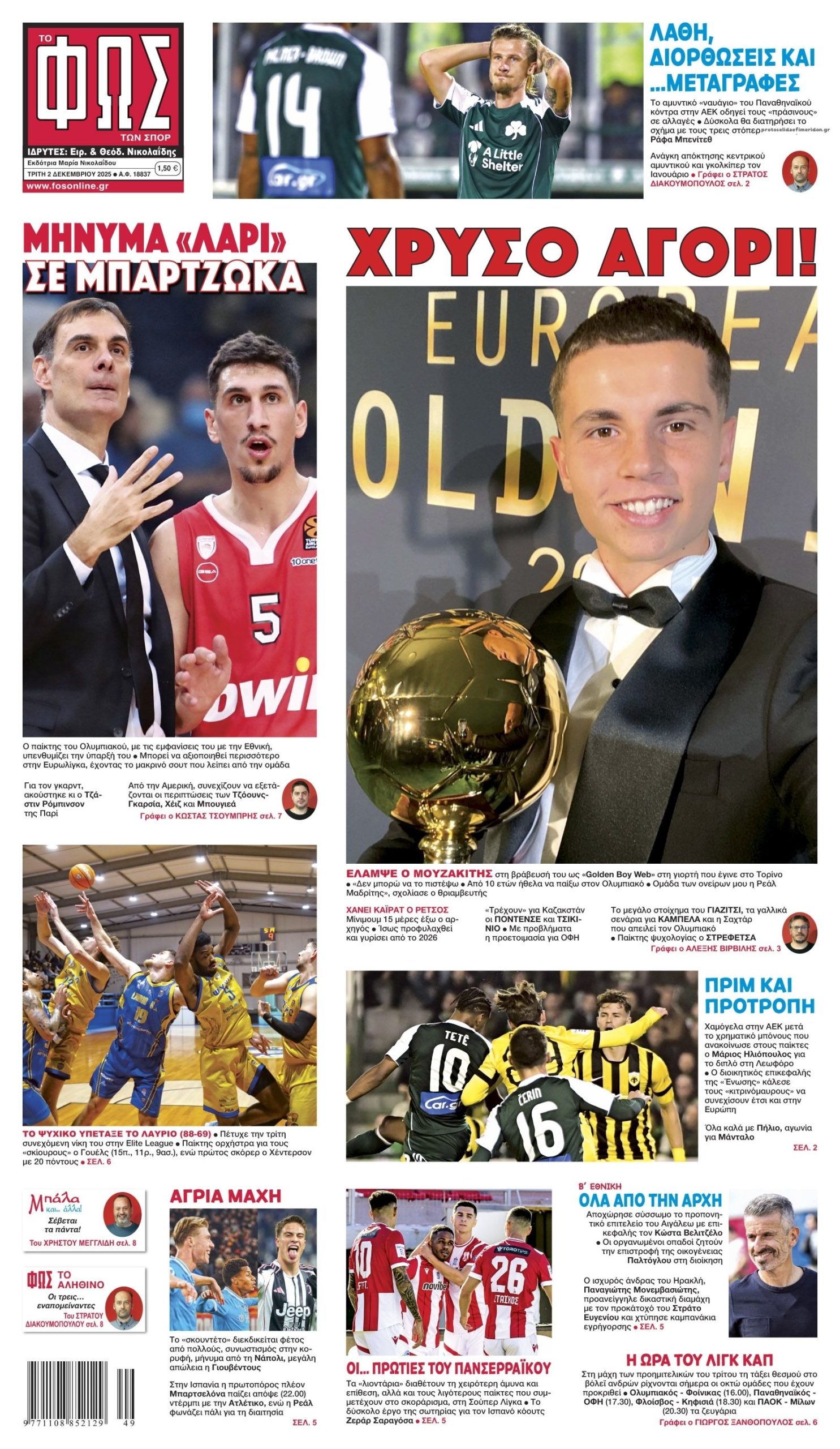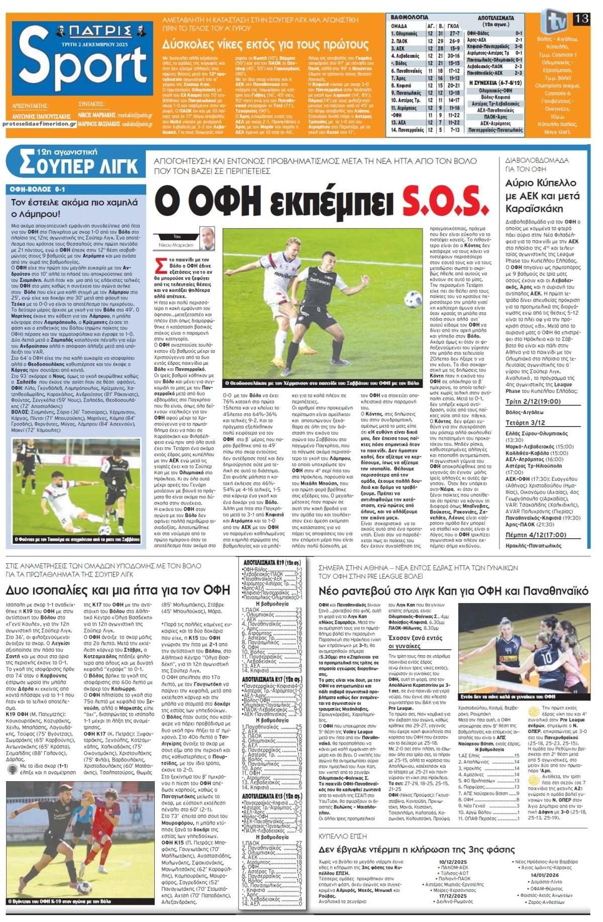 share Οι αθλητικές εφημερίδες 2/12/2025 δημοσιεύτηκε: 08:26 , 2 Δεκεμβρίου 2025 Επικαιρότητα Διαβάστε τα πρωτοσέλιδα από τις αθλητικές εφημερίδες, σήμερα 21/11/2025. #ΑΘΛΗΤΙΚΕΣ ΕΦΗΜΕΡΙΔΕΣ share Σχόλια Αναγνωστών σχολίασε και εσύ Ακολουθήστε το στο Google News και μάθετε πρώτοι όλες τις ειδήσεις Δείτε όλες τις τελευταίες Ειδήσεις από την Ελλάδα και τον Κόσμο στο Ροή Οικονομία Επιχειρήσεις Επικαιρότητα 10 λεπτά πριν FT: Όχι από την ΕΚΤ στον μηχανισμό υποστήριξης δανείου ύψους 140 δισ. ευρώ προς την Ουκρανία 40 λεπτά πριν Λαϊκές αγορές της Αττικής: Κανονικά θα λειτουργήσουν αύριο 1 ώρα πριν Βουλή: Σήμερα περνά από την Ολομέλεια το νομοσχέδιο για τη λειτουργία των καμερών στους δρόμους-... 40 λεπτά πριν Λαϊκές αγορές της Αττικής: Κανονικά θα λειτουργήσουν αύριο 2 ώρες πριν Ρευματοκλοπές: Τι κάνει ο ΔΕΔΔΗΕ για να περιοριστεί το φαινόμενο 2 ώρες πριν ΑΑΔΕ: Σε λειτουργία από σήμερα η νέα έκδοση της εφαρμογής “timologio”- Όλες οι λεπτομέρειες 7 ημέρες πριν ΕΛΤΑ: «Όχι» στο ενδεχόμενο παραχώρησης των Κέντρων Διαλογής σε ιδιώτες λένε οι εργαζόμενοι 2 εβδομάδες πριν ΔΕΗ: Έρχονται «πακέτα» ενέργειας και τηλεπικοινωνιών 2 εβδομάδες πριν ΔΕΗ: Σήμερα η παρουσίαση του νέου επιχειρησιακού σχεδίου 2026 – 2028 1 ώρα πριν Βουλή: Σήμερα περνά από την Ολομέλεια το νομοσχέδιο για τη λειτουργία των καμερών στους δρόμους-... 4 ώρες πριν Ταξί: Απεργούν από σήμερα οι ιδιοκτήτες: Ποια είναι τα αιτήματα τους 5 ώρες πριν Οι πολιτικές εφημερίδες 2/12/2025 ENIKOS NETWORK «Τόπο στα νιάτα» λέει ο Άλιμος Θεσσαλονίκη: «Δεν τον αντιλήφθηκα» – Ελεύθερος με όρους ο 39χρονος οδηγός ταξί για το θανατηφόρο τροχαίο με θύμα 35χρονο Ελπιδοφόρα ανακάλυψη: Σταγόνες για τη μύτη θα μπορούσαν να καταπολεμήσουν τον καρκίνο του εγκεφάλου DEMO: Πρωτοπορεί στη βιοτεχνολογία και εκπαιδεύει νέους επιστήμονες Τι σημαίνει η φράση «επί ξυρού ακμής» και από πού προέρχεται Γιατί στάζει η βρύση σουq Η διάσπαση της υδάτινης δέσμης οφείλεται σε θερμικά κύματα περισσότερα 15:10 , 23 Νοεμβρίου 2025 || Αυτή την Κυριακή με τη Realnews: Δωροεπιταγή 10€ Δωροεπιταγή αξίας 10€ για αγορές άνω των 60€ από τα πολυκαταστήματα Factory Outlet. H προσφορά ισ... 09:40 , 23 Νοεμβρίου 2025 || Αυτή την Κυριακή με τη Realnews: Instyle, μαζί Drive Αυτή την Κυριακή με τη Realnews: Instyle, μαζί Drive Instyle Η Κατερίνα Παπουτσάκη, η Helena Bac... 17:49 , 24 Σεπτεμβρίου 2025 || Ελληνικές Υπεραγορές Σκλαβενίτης: Τι απαντά για το πρόστιμο ύψους 1,44 εκατ. ευρώ Ανακοίνωση εξέδωσε η “Ελληνικές Υπεραγορές Σκλαβενίτης” σχετικά με το πρόστιμο ύψους ... 10:16 , 21 Σεπτεμβρίου 2025 || Σήμερα με τη Realnews: Instyle – Μαζί Drive Σήμερα με τη Realnews: Instyle, μαζί Drive Instyle Η Andie MacDowell, η Renate Reinsve και ο Οδυ... 12:05 , 7 Σεπτεμβρίου 2025 || Σήμερα με τη Realnews: Απόκρυφες τελετές της Debra Bokur – Μαζί Real taste & style Αυτή την Κυριακή με τη Realnews: Απόκρυφες τελετές της Debra Bokur, μαζί Real taste & style. ... 22:08 , 30 Αυγούστου 2025 || Ξεκινά η κατασκευή του νέου αυτοκινητοδρόμου Ιωάννινα- Κακαβιά Μέχρι το τέλος του έτους ξεκινά η κατασκευή του νέου αυτοκινητοδρόμου Ιωάννινα-Κακαβιά που αποτελ... 07:30 , 24 Αυγούστου 2025 || Σήμερα με τη Realnews: Instyle – Μαζί Drive Αυτή την Κυριακή με τη Realnews: Instyle, μαζί Drive Instyle Νέα σεζόν. Νέες τάσεις. Νέα πρόσωπα... 14:05 , 16 Αυγούστου 2025 || Η Realnews που κυκλοφορεί σήμερα Με τίτλο: «Πύρινη απειλή για τις πόλεις!» κυκλοφορεί, αυτήν την Κυριακή, η Realnews. Δραματική πρ... 09:40 , 10 Αυγούστου 2025 || Με τη Realnews που κυκλοφορεί: Δωροεπιταγή 10€ Την Κυριακή με τη Realnews: Δωροεπιταγή 10€ Δωροεπιταγή αξίας 10€ για αγορές άνω των 60€ από τα π... 09:00 , 27 