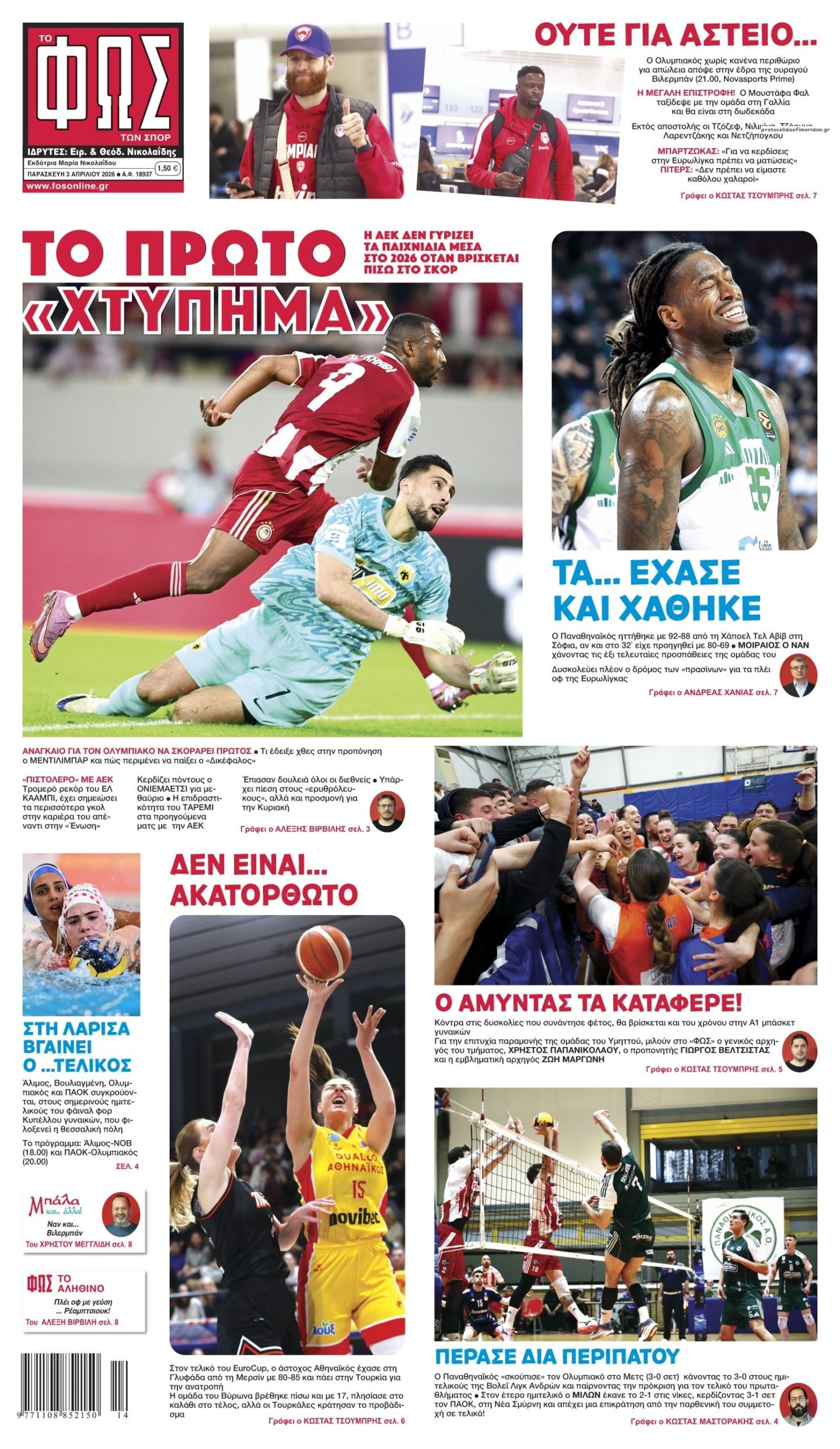 share Οι αθλητικές εφημερίδες 3/4/2026 δημοσιεύτηκε: 08:54 , 3 Απριλίου 2026 Επικαιρότητα Διαβάστε τα πρωτοσέλιδα από τις αθλητικές εφημερίδες, σήμερα 3/4/2026. #ΑΘΛΗΤΙΚΕΣ ΕΦΗΜΕΡΙΔΕΣ #ΕΦΗΜΕΡΙΔΕΣ #ΠΡΩΤΟΣΕΛΙΔΑ share Σχόλια Αναγνωστών σχολίασε και εσύ Ακολουθήστε το στο Google News και μάθετε πρώτοι όλες τις ειδήσεις Δείτε όλες τις τελευταίες Ειδήσεις από την Ελλάδα και τον Κόσμο στο Ροή Οικονομία Επιχειρήσεις Επικαιρότητα 26 λεπτά πριν Τράπεζες: Ημέρες ειδικής αργίας η σημερινή και η Μεγάλη Δευτέρα – Τι ισχύει για τις συναλλαγές 56 λεπτά πριν Τραμπ: Επιβάλλει νέους τελωνειακούς δασμούς έως και 100% σε εισαγόμενα φάρμακα –... 1 ώρα πριν e-ΕΦΚΑ και ΔΥΠΑ: Ποιοι πληρώνονται έως σήμερα 26 λεπτά πριν Τράπεζες: Ημέρες ειδικής αργίας η σημερινή και η Μεγάλη Δευτέρα – Τι ισχύει για τις συναλλαγές 1 ώρα πριν e-ΕΦΚΑ και ΔΥΠΑ: Ποιοι πληρώνονται έως σήμερα 4 ώρες πριν Fuel Pass: Τι πρέπει να κάνουν οι δικαιούχοι για να λάβουν την ενίσχυση πριν από το Πάσχα – Αναλυτικός... 2 ημέρες πριν ΔΕΗ: Στα 0,138 ευρώ /kWh το πράσινο τιμολόγιο ρεύματος τον Απρίλιο – Τι ισχύει για τα μπλε 4 ημέρες πριν Υπερταμείο: Εγκρίθηκε η αύξηση μετοχικού κεφαλαίου της CrediaBank 1 εβδομάδα πριν Motor Oil: Διαφοροποίηση των πηγών προμήθειας αργού λόγω της κρίσης 20 ώρες πριν Βουλή: Τι αναφέρει η τροπολογία ΣΥΡΙΖΑ-ΠΣ για οφειλές προς πιστωτικά ιδρύματα 1 ημέρα πριν Πάσχα 2026: Σήμερα η πρεμιέρα για το εορταστικό ωράριο – Πώς θα λειτουργήσουν τα καταστήματα 1 ημέρα πριν Καιρός: Ισχυροί άνεμοι, βροχές και καταιγίδες – Πού θα χτυπήσει το δεύτερο κύμα της κακοκαιρίας... ENIKOS NETWORK Τηλεθέαση (2/4): Πρωτιά για το «Ενώπιος Ενωπίω» με τη συνέντευξη του Αλέξη Τσίπρα στον Νίκο Χατζηνικολάου Τραγωδία στο Ηράκλειο: Νεκρός 63χρονος που έπεσε στο κενό από πολυκατοικία Καρκίνος: Επιστήμονες ανακαλύπτουν το σημάδι στο έντερο που μπορεί να αυξάνει τον κίνδυνο Η δίαιτα MIND «φρενάρει» τη γήρανση του εγκεφάλου-Ποια τρόφιμα να αποφεύγετε CERT-UA: Κυβερνοεγκληματίες υποδύονται την υπηρεσία της Ουκρανίας για να διασπείρουν το κακόβουλο λογισμικό «AGEWHEEZE» Moya: Το ρομπότ που φέρνει σπίτι σας την πιο «αλλόκοσμη» αίσθηση περισσότερα 20:20 , 25 Μαρτίου 2026 || ΑΑΔΕ: Εξαρθρώθηκε διεθνές δίκτυο λαθρεμπορίου τσιγάρων – Το modus operandi και οι «tobacco mules» Ένα οργανωμένο και πολυεπίπεδο διεθνές δίκτυο που δραστηριοποιούνταν στο λαθρεμπόριο τσιγάρων, εξ... 09:30 , 22 Μαρτίου 2026 || Με τη Realnews που κυκλοφορεί: Instyle – Μαζί Drive Αυτή την Κυριακή με τη Realnews: Instyle – Μαζί Drive InStyle Η Βάσω Λασκαράκη, ο Jude Law, ο Γι... 09:10 , 12 Ιανουαρίου 2026 || Καιρός: Χιόνια και πολικές θερμοκρασίες σήμερα – Η πρόγνωση της ΕΜΥ Έντονο κύμα ψύχους θα επικρατήσει στη χώρα τη Δευτέρα με χαμηλές θερμοκρασίες. Χιονοπτώσεις αναμέ... 09:03 , 8 Δεκεμβρίου 2025 || Καιρός: Ισχυρές βροχές και καταιγίδες στην Κρήτη σήμερα – Αναλυτική πρόγνωση ανά περιοχή Ισχυρές βροχές και καταιγίδες προβλέπονται σήμερα, Δευτέρα 8 Δεκεμβρίου 2025 στη βόρεια Κρήτη σύμ... 15:10 , 23 Νοεμβρίου 2025 || Αυτή την Κυριακή με τη Realnews: Δωροεπιταγή 10€ Δωροεπιταγή αξίας 10€ για αγορές άνω των 60€ από τα πολυκαταστήματα Factory Outlet. H προσφορά ισ... 09:40 , 23 Νοεμβρίου 2025 || Αυτή την Κυριακή με τη Realnews: Instyle, μαζί Drive Αυτή την Κυριακή με τη Realnews: Instyle, μαζί Drive Instyle Η Κατερίνα Παπουτσάκη, η Helena Bac... 17:49 , 24 Σεπτεμβρίου 2025 || Ελληνικές Υπεραγορές Σκλαβενίτης: Τι απαντά για το πρόστιμο ύψους 1,44 εκατ. ευρώ Ανακοίνωση εξέδωσε η “Ελληνικές Υπεραγορές Σκλαβενίτης” σχετικά με το πρόστιμο ύψους ... 10:16 , 21 Σεπτεμβρίου 20