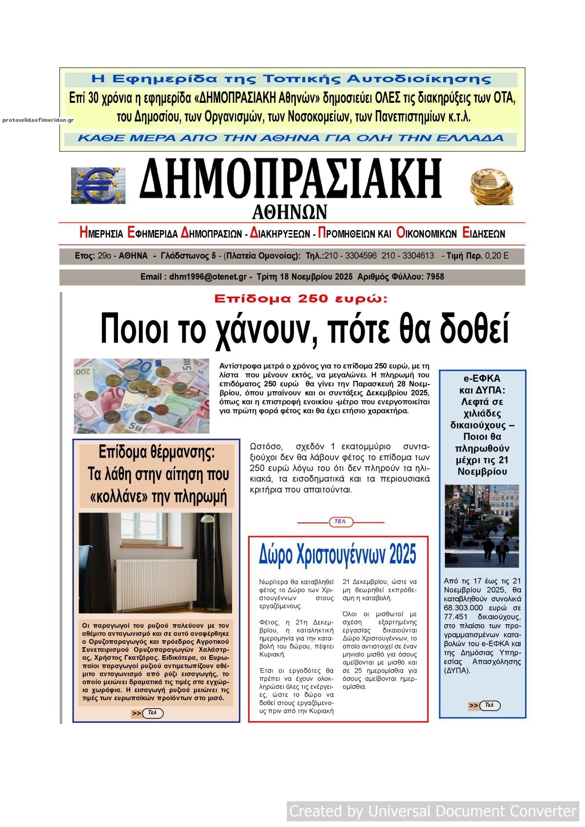 share Οι οικονομικές εφημερίδες 18/11/2025 δημοσιεύτηκε: 08:38 , 18 Νοεμβρίου 2025 Επικαιρότητα Διαβάστε τα πρωτοσέλιδα από τις οικονομικές εφημερίδες, σήμερα 18/11/2025. #ΟΙΚΟΝΟΜΙΚΕΣ ΕΦΗΜΕΡΙΔΕΣ #ΠΡΩΤΟΣΕΛΙΔΑ share Σχόλια Αναγνωστών σχολίασε και εσύ Ακολουθήστε το στο Google News και μάθετε πρώτοι όλες τις ειδήσεις Δείτε όλες τις τελευταίες Ειδήσεις από την Ελλάδα και τον Κόσμο στο Ροή Οικονομία Επιχειρήσεις Επικαιρότητα 24 λεπτά πριν Έρχεται νέα έκτακτη ενίσχυση σε χιλιάδες κτηνοτρόφους -‘Ολα όσα είπε ο Μητσοτάκης 54 λεπτά πριν Μητσοτάκης για στεγαστικό: Θα υπάρξουν κι άλλα μέτρα στήριξης 1 ώρα πριν Hellenic Train: Σε 24ωρη απεργία προχωρούν σήμερα οι εργαζόμενοι 24 λεπτά πριν Έρχεται νέα έκτακτη ενίσχυση σε χιλιάδες κτηνοτρόφους -‘Ολα όσα είπε ο Μητσοτάκης 54 λεπτά πριν Μητσοτάκης για στεγαστικό: Θα υπάρξουν κι άλλα μέτρα στήριξης 1 ώρα πριν Εφορία: Έρχεται νέο μπαράζ πλειστηριασμών ακινήτων -Ποιους οφειλέτες αφορά 4 ημέρες πριν ΕΛΤΑ: Τι διευκρινίζουν για το ασφαλιστικό συμβόλαιο ύψους 461.000 ευρώ 7 ημέρες πριν Υπερταμείο: Υπεγράφη η σύμβαση για την αξιοποίηση του ακινήτου «Σάνη Κασσάνδρας» στη Χαλκιδική 1 εβδομάδα πριν Μετασχηματισμός METLEN: Στόχος τα 2 δισ. ευρώ EBITDA με αιχμή ενέργεια και κρίσιμες πρώτες ύλες 1 ώρα πριν Hellenic Train: Σε 24ωρη απεργία προχωρούν σήμερα οι εργαζόμενοι 20 ώρες πριν Αυτή την Κυριακή με τη Realnews: Δωροεπιταγή 10€ 1 ημέρα πριν Πολυτεχνείο: Πώς κινούνται σήμερα τα Μέσα Μαζικής Μεταφοράς – Αναλυτικά τι ισχύει για... ENIKOS NETWORK Οι άνθρωποι που αφήνουν μισογεμάτα ποτήρια παντού στο σπίτι, συνήθως διαθέτουν 11 συγκεκριμένα χαρακτηριστικά Θεσσαλονίκη: Μόλις είδε τους αστυνομικούς το έβαλε στα πόδια και άφησε μισή… βαλίτσα κλοπιμαία Κρυολόγημα: Η αρχαία ινδική μέθοδος που ανακουφίζει από τα συμπτώματα – Τεκμηριώνεται επιστημονικά ΕΟΦ: Σε περιορισμένη διαθεσιμότητα 279 φάρμακα τον Οκτώβριο Νέα εκστρατεία EVALUSION ClickFix διανέμει κακόβουλα λογισμικά – Τι είναι το Amatera Stealer και το NetSupport RAT Τι συνέβη στον διατηρημένο μεγάλο λευκό καρχαρία που βρέθηκε σε εγκαταλελειμμένο πάρκο άγριας ζωής περισσότερα 17:49 , 24 Σεπτεμβρίου 2025 || Ελληνικές Υπεραγορές Σκλαβενίτης: Τι απαντά για το πρόστιμο ύψους 1,44 εκατ. ευρώ Ανακοίνωση εξέδωσε η “Ελληνικές Υπεραγορές Σκλαβενίτης” σχετικά με το πρόστιμο ύψους ... 10:16 , 21 Σεπτεμβρίου 2025 || Σήμερα με τη Realnews: Instyle – Μαζί Drive Σήμερα με τη Realnews: Instyle, μαζί Drive Instyle Η Andie MacDowell, η Renate Reinsve και ο Οδυ... 12:05 , 7 Σεπτεμβρίου 2025 || Σήμερα με τη Realnews: Απόκρυφες τελετές της Debra Bokur – Μαζί Real taste & style Αυτή την Κυριακή με τη Realnews: Απόκρυφες τελετές της Debra Bokur, μαζί Real taste & style. ... 22:08 , 30 Αυγούστου 2025 || Ξεκινά η κατασκευή του νέου αυτοκινητοδρόμου Ιωάννινα- Κακαβιά Μέχρι το τέλος του έτους ξεκινά η κατασκευή του νέου αυτοκινητοδρόμου Ιωάννινα-Κακαβιά που αποτελ... 07:30 , 24 Αυγούστου 2025 || Σήμερα με τη Realnews: Instyle – Μαζί Drive Αυτή την Κυριακή με τη Realnews: Instyle, μαζί Drive Instyle Νέα σεζόν. Νέες τάσεις. Νέα πρόσωπα... 14:05 , 16 Αυγούστου 2025 || Η Realnews που κυκλοφορεί σήμερα Με τίτλο: «Πύρινη απειλή για τις πόλεις!» κυκλοφορεί, αυτήν την Κυριακή, η Realnews. Δραματική πρ... 09:40 , 10 Αυγούστου 2025 || Με τη Realnews που κυκλοφορεί: Δωροεπιταγή 10€ Την Κυριακή με τη Realnews: Δωροεπιταγή 10€ Δωροεπιταγή αξίας 10€ για αγορές άνω των 60€ από τα π... 09:00 , 27 Ιουλίου 2025 || Σήμερα με τη Realnews: Παιχνίδια κατασκόπων του John Lutz – Μαζί αστυνομικά μυθιστορήματα και Μαστορέματα Αυτή την Κυριακή με τη Realnews: Παιχνίδια κατασκόπων του John Lutz, μαζί αστυν