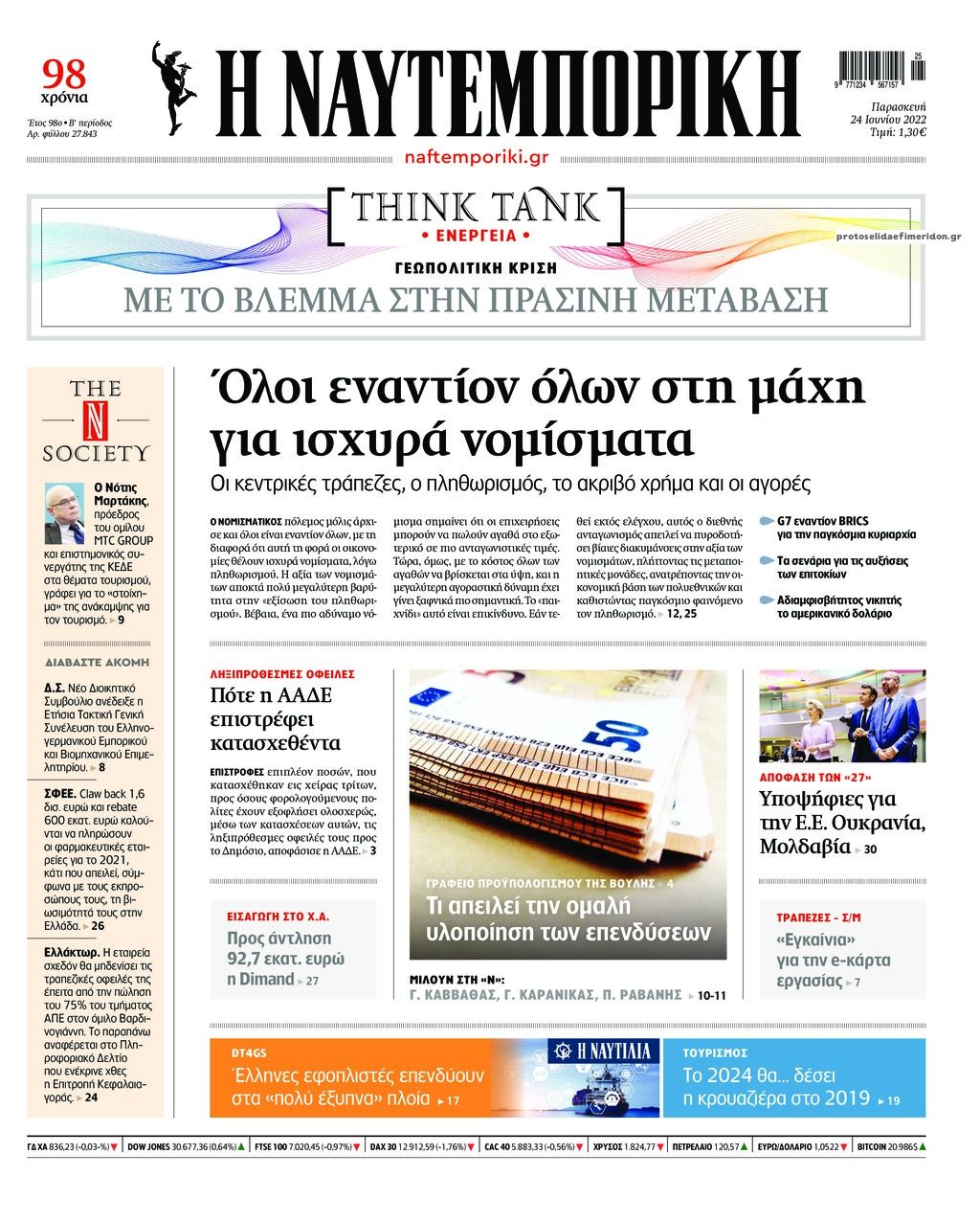share Οι οικονομικές εφημερίδες 24/6/2022 δημοσιεύτηκε: 09:03 , 24 Ιουνίου 2022 Επικαιρότητα Διαβάστε τα πρωτοσέλιδα από τις οικονομικές εφημερίδες, σήμερα 24/6/2022. #ΟΙΚΟΝΟΜΙΚΕΣ ΕΦΗΜΕΡΙΔΕΣ #ΠΡΩΤΟΣΕΛΙΔΑ share Επιδότηση ηλεκτρικών συσκευών-αιτήσεις: Ποιοι ΑΦΜ παίρνουν σήμερα 24/6 σειρά Διακοπές για… όλα τα γούστα: Τα προγράμματα που “τρέχουν” – Τι προσφέρουν στους δικαιούχους ΣΕΕΠΕ: Μύθοι και αλήθειες για τις τιμές των καυσίμων στην Ελλάδα Σχόλια Αναγνωστών σχολίασε και εσύ Ακολουθήστε το στο Google News και μάθετε πρώτοι όλες τις ειδήσεις Δείτε όλες τις τελευταίες Ειδήσεις από την Ελλάδα και τον Κόσμο στο Ροή Οικονομία Επιχειρήσεις Επικαιρότητα 53 δευτερόλεπτα πριν Επίδομα παιδιού: Πότε θα δοθεί η τελευταία δόση για το 2025 από τον ΟΠΕΚΑ και τι πρέπει να γνωρίζετε 31 λεπτά πριν Eurostat: Κάτω από την αρχική εκτίμηση της Υπηρεσίας ο πληθωρισμός στην Ελλάδα τον Νοέμβριο του 2025... 1 ώρα πριν Συντάξεις Ιανουαρίου 2026: Σε ποιους θα πιστωθούν την Πέμπτη τα χρήματα και τι αυξήσεις θα δοθούν... 31 λεπτά πριν Eurostat: Κάτω από την αρχική εκτίμηση της Υπηρεσίας ο πληθωρισμός στην Ελλάδα τον Νοέμβριο του 2025... 1 ώρα πριν Συντάξεις Ιανουαρίου 2026: Σε ποιους θα πιστωθούν την Πέμπτη τα χρήματα και τι αυξήσεις θα δοθούν... 2 ώρες πριν ΕΛΕΤΑΕΝ: Πόσα χρήματα θα δοθούν σε δήμους και νοικοκυριά από τις ΑΠΕ 2 εβδομάδες πριν Πετραλιάς: Έρχεται ρύθμιση για τα παρακρατηθέντα 13 εκατ. ευρώ των εργαζομένων της ΕΝΑΕ 2 εβδομάδες πριν ΑΔΜΗΕ για ηλεκτρικές διασυνδέσεις Δωδεκανήσων και Βορείου Αιγαίου: Αυτά είναι τα οφέλη 3 εβδομάδες πριν ΕΛΤΑ: «Όχι» στο ενδεχόμενο παραχώρησης των Κέντρων Διαλογής σε ιδιώτες λένε οι εργαζόμενοι 6 ώρες πριν Έρευνα MRB: Η πρόθεση ψήφου και τα σημαντικότερα προβλήματα των πολιτών 8 ώρες πριν Λεωφορεία: Στάση εργασίας πραγματοποιούν σήμερα οι εργαζόμενοι-Δείτε τις ώρες 1 ημέρα πριν Μετρό Θεσσαλονίκης: Πιλοτική 24ωρη λειτουργία στις 20 και 27 Δεκεμβρίου ENIKOS NETWORK Θεσσαλονίκη: Ακυρώνονται τρεις παραστάσεις του ΚΘΒΕ λόγω στάσης εργασίας των εργαζομένων Τραγωδία στην Αχαΐα: 48χρονος κατέρρευσε στο κυνήγι μπροστά στα μάτια του πατέρα του Σοβαροί κίνδυνοι από τη λάθος χορήγηση φαρμάκου για τις αιμορραγίες-Συστάσεις προς τους γιατρούς 5 πράγματα που αποφεύγει γαστρεντερολόγος για να μειώσει τον κίνδυνο καρκίνου του εντέρου Χαρτογραφώντας το «σημείο χωρίς επιστροφή»: Για πρώτη φορά αποκαλύπτεται με λεπτομέρεια το ακανθώδες όριο της ατμόσφαιρας τ... Η Google καταργεί τη λειτουργία «dark web report» – Πώς θα μπορούν οι χρήστες να διαγράφουν τα δεδομένα τους περισσότερα 09:03 , 8 Δεκεμβρίου 2025 || Καιρός: Ισχυρές βροχές και καταιγίδες στην Κρήτη σήμερα – Αναλυτική πρόγνωση ανά περιοχή Ισχυρές βροχές και καταιγίδες προβλέπονται σήμερα, Δευτέρα 8 Δεκεμβρίου 2025 στη βόρεια Κρήτη σύμ... 15:10 , 23 Νοεμβρίου 2025 || Αυτή την Κυριακή με τη Realnews: Δωροεπιταγή 10€ Δωροεπιταγή αξίας 10€ για αγορές άνω των 60€ από τα πολυκαταστήματα Factory Outlet. H προσφορά ισ... 09:40 , 23 Νοεμβρίου 2025 || Αυτή την Κυριακή με τη Realnews: Instyle, μαζί Drive Αυτή την Κυριακή με τη Realnews: Instyle, μαζί Drive Instyle Η Κατερίνα Παπουτσάκη, η Helena Bac... 17:49 , 24 Σεπτεμβρίου 2025 || Ελληνικές Υπεραγορές Σκλαβενίτης: Τι απαντά για το πρόστιμο ύψους 1,44 εκατ. ευρώ Ανακοίνωση εξέδωσε η “Ελληνικές Υπεραγορές Σκλαβενίτης” σχετικά με το πρόστιμο ύψους ... 10:16 , 21 Σεπτεμβρίου 2025 || Σήμερα με τη Realnews: Instyle – Μαζί Drive Σήμερα με τη Realnews: Instyle, μαζί Drive Instyle Η Andie MacDowell, η Renate Reinsve και ο Οδυ... 12:05 , 7 Σεπτεμβρίου 