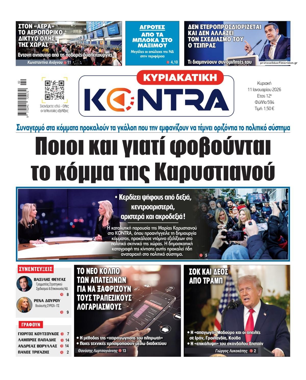 share Οι πολιτικές εφημερίδες 11/1/2026 δημοσιεύτηκε: 08:00 , 11 Ιανουαρίου 2026 Επικαιρότητα Διαβάστε τα πρωτοσέλιδα από τις πολιτικές εφημερίδες, σήμερα 11/1/2026. #ΕΦΗΜΕΡΙΔΕΣ #ΠΟΛΙΤΙΚΕΣ ΕΦΗΜΕΡΙΔΕΣ #ΠΡΩΤΟΣΕΛΙΔΑ share Σχόλια Αναγνωστών σχολίασε και εσύ Ακολουθήστε το στο Google News και μάθετε πρώτοι όλες τις ειδήσεις Δείτε όλες τις τελευταίες Ειδήσεις από την Ελλάδα και τον Κόσμο στο Ροή Οικονομία Επιχειρήσεις Επικαιρότητα 12 λεπτά πριν Επιστροφή ενοικίου: Έρχεται νέα πληρωμή-Πότε θα γίνει και ποιους θα αφορά 53 λεπτά πριν Υπουργείο Ψηφιακής Διακυβέρνησης: Αυτά είναι τα οφέλη του νέου σύστημα ιχνηλασιμότητας των... 2 ώρες πριν Τραπεζικοί λογαριασμοί: Ποιες καταθέσεις μπαίνουν στο στόχαστρο της Εφορίας και γιατί 53 λεπτά πριν Υπουργείο Ψηφιακής Διακυβέρνησης: Αυτά είναι τα οφέλη του νέου σύστημα ιχνηλασιμότητας των... 2 ώρες πριν Τραπεζικοί λογαριασμοί: Ποιες καταθέσεις μπαίνουν στο στόχαστρο της Εφορίας και γιατί 2 ώρες πριν Χατζηδάκης: Το 2026 συνεχίζουμε τις μεταρρυθμίσεις- Τι είπε για την Ψηφιακή Κάρτα Εργασίας 5 ημέρες πριν Nestle: Ανακαλεί προληπτικά προϊόντα βρεφικού γάλακτος λόγω πιθανής ύπαρξης τοξίνης – Αναλυτική... 1 εβδομάδα πριν Στον αστερισμό των deals το 2025 ο εγχώριος κλάδος τροφίμων και ποτών 3 εβδομάδες πριν Υπερταμείο: Αυτός είναι ο νέος Διευθύνων Σύμβουλος των Συγκοινωνιών Αθηνών – Ομίλου ΟΑΣΑ 4 ώρες πριν Σήμερα με τη Realnews: Μυστηριώδης εξαφάνιση του Rick Mofina – Μαζί Food & Travel 8 ώρες πριν Καιρός: Ψυχρή «εισβολή» με χιόνια, ισχυρούς ανέμους και σημαντική πτώση της θερμοκρασίας –... 23 ώρες πριν Η Realnews στο www.pressreader.com ENIKOS NETWORK Κουίζ για την παλιά Αθήνα: Αναγνωρίζετε ποια οδός είναι; Σήμερα είναι διαφορετική Ισραήλ: Ο στρατός εξέδωσε προειδοποίηση για εκκένωση περιοχών στον Λίβανο – «Σύντομα θα χτυπηθούν στρατιωτικές υποδομές της... Ζευγάρι έκανε σεξ μέσα σε μαγνητικό τομογράφο – Τι ανεξήγητο συνέβη, σύμφωνα με τους επιστήμονες; Λίπος στην κοιλιά: Το μόνο που λειτουργεί για να το αντιμετωπίσουμε αποτελεσματικά, σύμφωνα με ειδικό Android: Πώς να μεταφέρετε τα δεδομένα σας στη νέα σας συσκευή Το Τηλεσκόπιο James Webb εντόπισε παράξενα κοσμικά αντικείμενα – Γαλαξίες-«πλατύποδες» ή κάτι εντελώς νέο; περισσότερα 09:03 , 8 Δεκεμβρίου 2025 || Καιρός: Ισχυρές βροχές και καταιγίδες στην Κρήτη σήμερα – Αναλυτική πρόγνωση ανά περιοχή Ισχυρές βροχές και καταιγίδες προβλέπονται σήμερα, Δευτέρα 8 Δεκεμβρίου 2025 στη βόρεια Κρήτη σύμ... 15:10 , 23 Νοεμβρίου 2025 || Αυτή την Κυριακή με τη Realnews: Δωροεπιταγή 10€ Δωροεπιταγή αξίας 10€ για αγορές άνω των 60€ από τα πολυκαταστήματα Factory Outlet. H προσφορά ισ... 09:40 , 23 Νοεμβρίου 2025 || Αυτή την Κυριακή με τη Realnews: Instyle, μαζί Drive Αυτή την Κυριακή με τη Realnews: Instyle, μαζί Drive Instyle Η Κατερίνα Παπουτσάκη, η Helena Bac... 17:49 , 24 Σεπτεμβρίου 2025 || Ελληνικές Υπεραγορές Σκλαβενίτης: Τι απαντά για το πρόστιμο ύψους 1,44 εκατ. ευρώ Ανακοίνωση εξέδωσε η “Ελληνικές Υπεραγορές Σκλαβενίτης” σχετικά με το πρόστιμο ύψους ... 10:16 , 21 Σεπτεμβρίου 2025 || Σήμερα με τη Realnews: Instyle – Μαζί Drive Σήμερα με τη Realnews: Instyle, μαζί Drive Instyle Η Andie MacDowell, η Renate Reinsve και ο Οδυ... 12:05 , 7 Σεπτεμβρίου 2025 || Σήμερα με τη Realnews: Απόκρυφες τελετές της Debra Bokur – Μαζί Real taste & style Αυτή την Κυριακή με τη Realnews: Απόκρυφες τελετές της Debra Bokur, μαζί Real taste & style. ... 22:08 , 30 Αυγούστου 2025 || Ξεκινά η κατασκευή του νέου αυτοκινητοδρόμου Ιωάννινα- Κακαβιά Μέχρι το τέλος του έτους ξεκινά η κατασκευή του νέου αυτοκινητοδρόμου Ιωάννινα-Κακαβιά που αποτελ... 07:30 , 