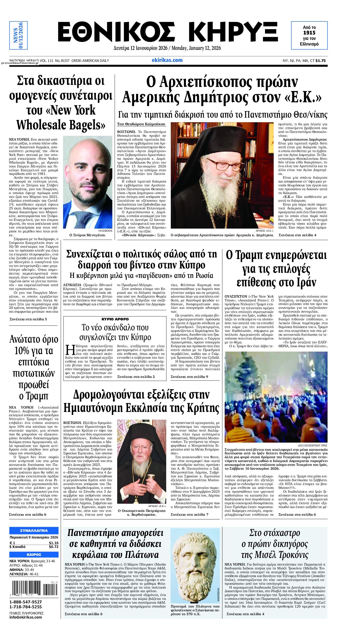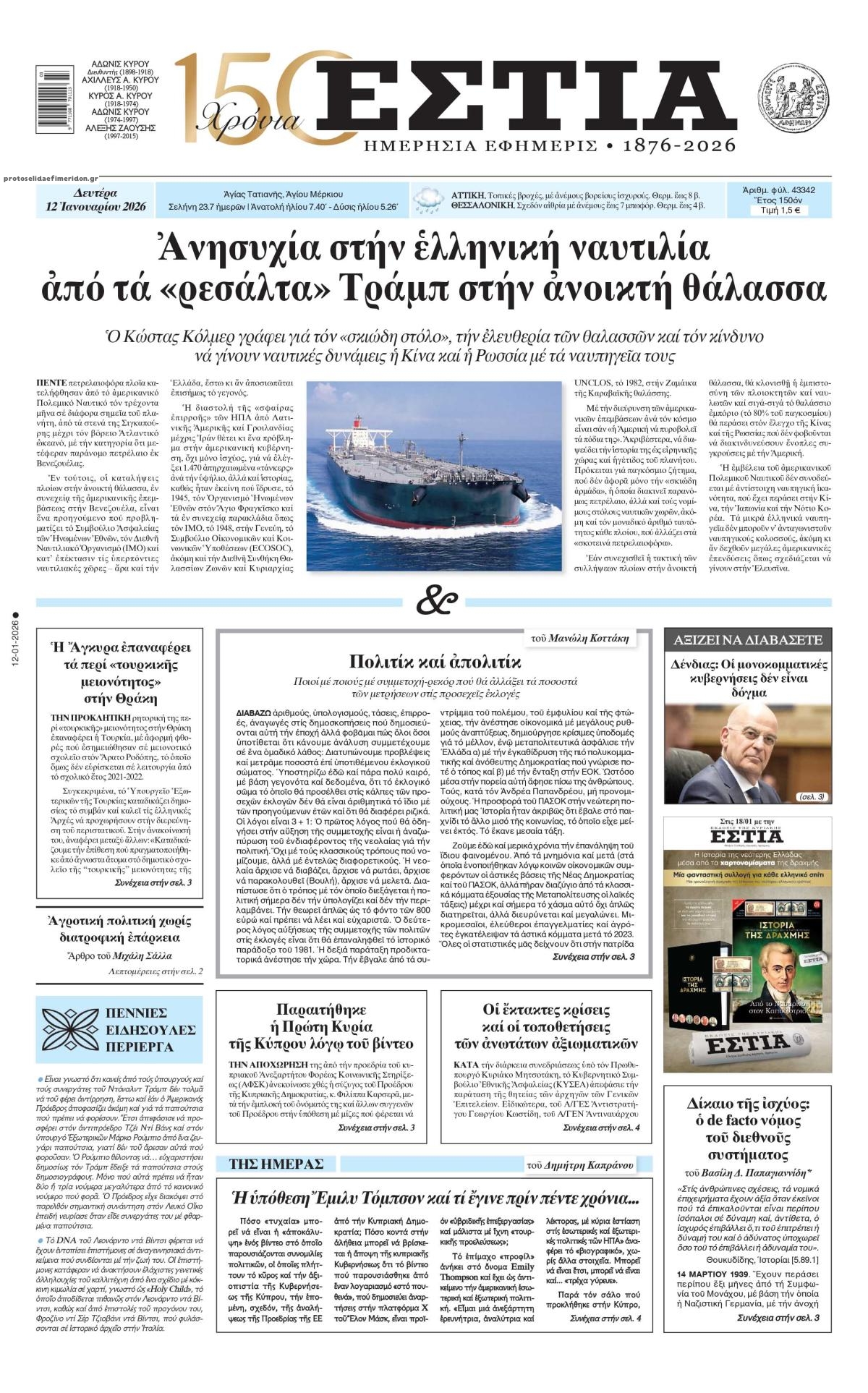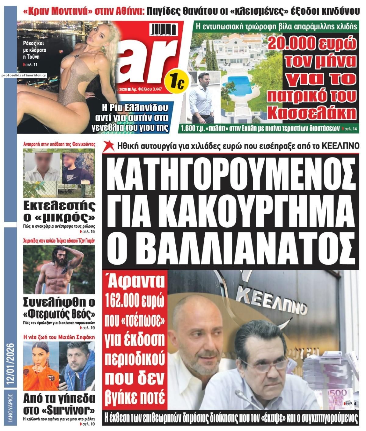 share Οι πολιτικές εφημερίδες 12/1/2026 δημοσιεύτηκε: 07:54 , 12 Ιανουαρίου 2026 Επικαιρότητα Διαβάστε τα πρωτοσέλιδα από τις πολιτικές εφημερίδες, σήμερα 12/1/2026. #ΕΦΗΜΕΡΙΔΕΣ #ΠΟΛΙΤΙΚΕΣ ΕΦΗΜΕΡΙΔΕΣ #ΠΡΩΤΟΣΕΛΙΔΑ share Σχόλια Αναγνωστών σχολίασε και εσύ Ακολουθήστε το στο Google News και μάθετε πρώτοι όλες τις ειδήσεις Δείτε όλες τις τελευταίες Ειδήσεις από την Ελλάδα και τον Κόσμο στο Ροή Οικονομία Επιχειρήσεις Επικαιρότητα 18 λεπτά πριν Χρυσός και ασήμι: Τιμές – ρεκόρ για τα πολύτιμα μέταλλα – Νέες αναλύσεις για την πορεία τους... 30 λεπτά πριν Την Κυριακή με τη Realnews: Δωροεπιταγή 10€ 49 λεπτά πριν Ενεργειακό κόστος βιομηχανίας: Γιατί βάζει μπλόκο η Κομισιόν στο ιταλικό μοντέλο στήριξης που... 49 λεπτά πριν Ενεργειακό κόστος βιομηχανίας: Γιατί βάζει μπλόκο η Κομισιόν στο ιταλικό μοντέλο στήριξης που... 2 ώρες πριν ΙΟΒΕ: Βελτιώθηκε το οικονομικό κλίμα τον Δεκέμβριο του 2025 – Τι δείχνουν τα στοιχεία 3 ώρες πριν «Ημέρα Καριέρας» της ΔΥΠΑ: Στο επίκεντρο της απασχόλησης βρέθηκε η Λάρισα – Μεγάλο το... 6 ημέρες πριν Nestle: Ανακαλεί προληπτικά προϊόντα βρεφικού γάλακτος λόγω πιθανής ύπαρξης τοξίνης – Αναλυτική... 2 εβδομάδες πριν Στον αστερισμό των deals το 2025 ο εγχώριος κλάδος τροφίμων και ποτών 3 εβδομάδες πριν Υπερταμείο: Αυτός είναι ο νέος Διευθύνων Σύμβουλος των Συγκοινωνιών Αθηνών – Ομίλου ΟΑΣΑ 30 λεπτά πριν Την Κυριακή με τη Realnews: Δωροεπιταγή 10€ 5 ώρες πριν Την Κυριακή με τη Realnews: Ό,τι και αν αγοράσεις, σκανάρεις και κερδίζεις! 6 ώρες πριν Αυτή την Κυριακή με τη Realnews: Στοιχειωμένα μυστικά – Ένα συναρπαστικό μυθιστόρημα της Emmeline Duncan ENIKOS NETWORK Χανιά: Στην Εντατική με βαριές κρανιοεγκεφαλικές 33χρονος ύστερα από τροχαίο με τη μηχανή του – ΦΩΤΟ Τηλεφωνική επικοινωνία Γεραπετρίτη – Φιντάν – Στο επίκεντρο της συζήτησης οι διμερείς σχέσεις Στο προσκήνιο το ζήτημα ένταξης των νοσοκομειακών Φυσικοθεραπευτών στα Βαρέα και Ανθυγιεινά Επαγγέλματα Δεύτερο κύμα γρίπης τον Φεβρουάριο-Σε πίεση το ΕΣΥ Είναι η AI μια «φούσκα»; Τι λένε 40 ηγέτες και αναλυτές Τι σημαίνει η φράση «εκπάγλου καλλονής» και από πού προέρχεται περισσότερα 09:10 || Καιρός: Χιόνια και πολικές θερμοκρασίες σήμερα – Η πρόγνωση της ΕΜΥ Έντονο κύμα ψύχους θα επικρατήσει στη χώρα τη Δευτέρα με χαμηλές θερμοκρασίες. Χιονοπτώσεις αναμέ... 09:03 , 8 Δεκεμβρίου 2025 || Καιρός: Ισχυρές βροχές και καταιγίδες στην Κρήτη σήμερα – Αναλυτική πρόγνωση ανά περιοχή Ισχυρές βροχές και καταιγίδες προβλέπονται σήμερα, Δευτέρα 8 Δεκεμβρίου 2025 στη βόρεια Κρήτη σύμ... 15:10 , 23 Νοεμβρίου 2025 || Αυτή την Κυριακή με τη Realnews: Δωροεπιταγή 10€ Δωροεπιταγή αξίας 10€ για αγορές άνω των 60€ από τα πολυκαταστήματα Factory Outlet. H προσφορά ισ... 09:40 , 23 Νοεμβρίου 2025 || Αυτή την Κυριακή με τη Realnews: Instyle, μαζί Drive Αυτή την Κυριακή με τη Realnews: Instyle, μαζί Drive Instyle Η Κατερίνα Παπουτσάκη, η Helena Bac... 17:49 , 24 Σεπτεμβρίου 2025 || Ελληνικές Υπεραγορές Σκλαβενίτης: Τι απαντά για το πρόστιμο ύψους 1,44 εκατ. ευρώ Ανακοίνωση εξέδωσε η “Ελληνικές Υπεραγορές Σκλαβενίτης” σχετικά με το πρόστιμο ύψους ... 10:16 , 21 Σεπτεμβρίου 2025 || Σήμερα με τη Realnews: Instyle – Μαζί Drive Σήμερα με τη Realnews: Instyle, μαζί Drive Instyle Η Andie MacDowell, η Renate Reinsve και ο Οδυ... 12:05 , 7 Σεπτεμβρίου 2025 || Σήμερα με τη Realnews: Απόκρυφες τελετές της Debra Bokur – Μαζί Real taste & style Αυτή την Κυριακή με τη Realnews: Απόκρυφες τελετές της Debra Bokur, μαζί Real taste & style. ... 22:08 , 30 Αυγούστου 2025 || Ξεκινά η κατασκευή του νέου αυτοκινητοδρόμου Ιωάννινα- Κακαβιά Μέχρι το τέλος του έτους ξεκινά η 