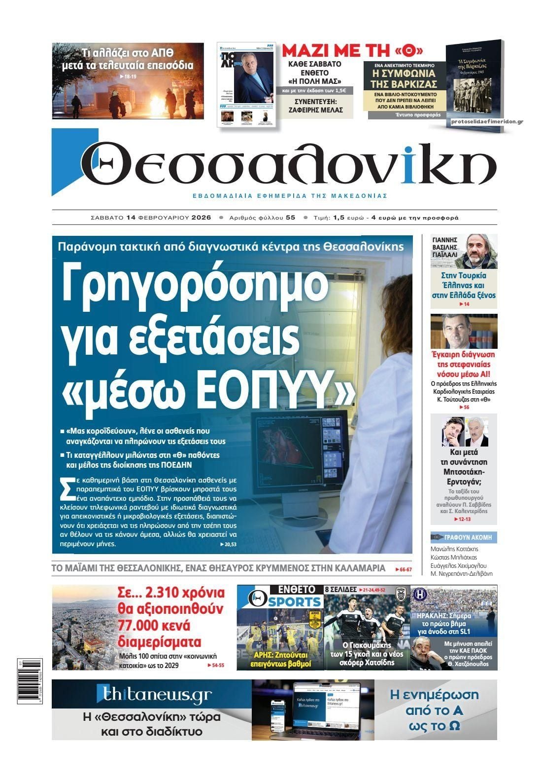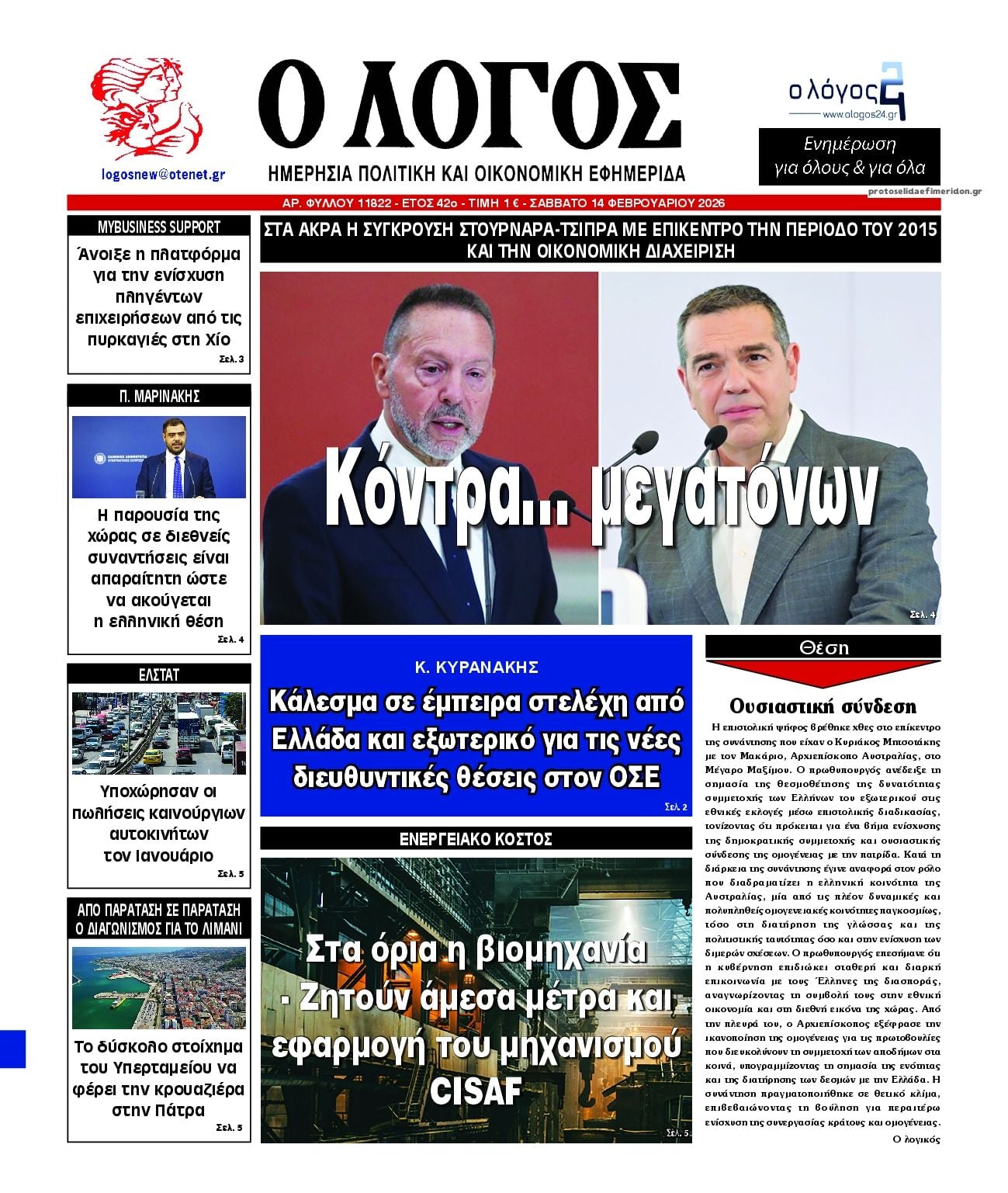 share Οι πολιτικές εφημερίδες 14/2/2026 δημοσιεύτηκε: 08:31 , 14 Φεβρουαρίου 2026 Επικαιρότητα Διαβάστε τα πρωτοσέλιδα από τις πολιτικές εφημερίδες, σήμερα 14/2/2026. #ΕΦΗΜΕΡΙΔΕΣ #ΠΟΛΙΤΙΚΕΣ ΕΦΗΜΕΡΙΔΕΣ #ΠΡΩΤΟΣΕΛΙΔΑ share Σχόλια Αναγνωστών σχολίασε και εσύ Ακολουθήστε το στο Google News και μάθετε πρώτοι όλες τις ειδήσεις Δείτε όλες τις τελευταίες Ειδήσεις από την Ελλάδα και τον Κόσμο στο Ροή Οικονομία Επιχειρήσεις Επικαιρότητα 4 ώρες πριν ΕΒΙΚΕΝ: Ζητεί άμεσα μέτρα για τη μείωση του κόστους ενέργειας 35 λεπτά πριν Άγιος Βαλεντίνος 2026: Πόσο κοστίζουν φέτος τα τριαντάφυλλα – Πού κυμαίνεται η τιμή του «βασιλιά... 1 ώρα πριν Αντίστροφη μέτρηση για τις φορολογικές δηλώσεις – Τι πρέπει να ελέγξουν οι φορολογούμενοι στα... 4 ώρες πριν ΕΒΙΚΕΝ: Ζητεί άμεσα μέτρα για τη μείωση του κόστους ενέργειας 1 ώρα πριν Αντίστροφη μέτρηση για τις φορολογικές δηλώσεις – Τι πρέπει να ελέγξουν οι φορολογούμενοι στα... 11 ώρες πριν ΑΔΜΗΕ: Σήμα εκκίνησης για την αύξηση μετοχικού κεφαλαίου του κατά 1 δισ. ευρώ 2 ημέρες πριν Υπερταμείο: Στα 12 δισ. ευρώ το χαρτοφυλάκιο – Ποιες κινήσεις έγιναν το 2025 4 ημέρες πριν ΕΛΤΑ: Αυτά είναι τα πρώτα 11 καταστήματα που κατεβάζουν ρολά 4 ημέρες πριν Καστέλλι: Προκηρύχθηκε ο διαγωνισμός για τα συστήματα αεροναυτιλίας -Όλα όσα είπε ο Δήμας 2 ώρες πριν Οι αθλητικές εφημερίδες 14/2/2026 2 ώρες πριν Οι πολιτικές εφημερίδες 14/2/2026 2 ώρες πριν Οι οικονομικές εφημερίδες 14/2/2026 ENIKOS NETWORK Χειμερινοί Ολυμπιακοί Αγώνες: Ο βουδιστής μοναχός του… σνόουμπορντ στο προσκήνιο μετά τα 3 μετάλλια της Νότιας Κορέας Την Κυριακή με τη Realnews: Ό,τι και αν αγοράσεις, σκανάρεις και κερδίζεις! Ένα στα 100 παιδιά γεννιέται με κάποια μορφή συγγενούς καρδιοπάθειας Επίμονη καούρα: Η κοινή ενόχληση που μπορεί να είναι σύμπτωμα σοβαρής νόσου – Πότε να ανησυχήσετε OysterLoader: Το εξελιγμένο malware που συνδέεται με επιθέσεις ransomware Πάγωσε η Βαλτική Θάλασσα και ενώθηκαν τα δυο νησιά της Εσθονίας – Εντυπωσιακό βίντεο περισσότερα 09:10 , 12 Ιανουαρίου 2026 || Καιρός: Χιόνια και πολικές θερμοκρασίες σήμερα – Η πρόγνωση της ΕΜΥ Έντονο κύμα ψύχους θα επικρατήσει στη χώρα τη Δευτέρα με χαμηλές θερμοκρασίες. Χιονοπτώσεις αναμέ... 09:03 , 8 Δεκεμβρίου 2025 || Καιρός: Ισχυρές βροχές και καταιγίδες στην Κρήτη σήμερα – Αναλυτική πρόγνωση ανά περιοχή Ισχυρές βροχές και καταιγίδες προβλέπονται σήμερα, Δευτέρα 8 Δεκεμβρίου 2025 στη βόρεια Κρήτη σύμ... 15:10 , 23 Νοεμβρίου 2025 || Αυτή την Κυριακή με τη Realnews: Δωροεπιταγή 10€ Δωροεπιταγή αξίας 10€ για αγορές άνω των 60€ από τα πολυκαταστήματα Factory Outlet. H προσφορά ισ... 09:40 , 23 Νοεμβρίου 2025 || Αυτή την Κυριακή με τη Realnews: Instyle, μαζί Drive Αυτή την Κυριακή με τη Realnews: Instyle, μαζί Drive Instyle Η Κατερίνα Παπουτσάκη, η Helena Bac... 17:49 , 24 Σεπτεμβρίου 2025 || Ελληνικές Υπεραγορές Σκλαβενίτης: Τι απαντά για το πρόστιμο ύψους 1,44 εκατ. ευρώ Ανακοίνωση εξέδωσε η “Ελληνικές Υπεραγορές Σκλαβενίτης” σχετικά με το πρόστιμο ύψους ... 10:16 , 21 Σεπτεμβρίου 2025 || Σήμερα με τη Realnews: Instyle – Μαζί Drive Σήμερα με τη Realnews: Instyle, μαζί Drive Instyle Η Andie MacDowell, η Renate Reinsve και ο Οδυ... 12:05 , 7 Σεπτεμβρίου 2025 || Σήμερα με τη Realnews: Απόκρυφες τελετές της Debra Bokur – Μαζί Real taste & style Αυτή την Κυριακή με τη Realnews: Απόκρυφες τελετές της Debra Bokur, μαζί Real taste & style. ... 22:08 , 30 Αυγούστου 2025 || Ξεκινά η κατασκευή του νέου αυτοκινητοδρόμου Ιωάννινα- Κακαβιά Μέχρι το τέλος του έτους ξεκινά η κατασκευή του νέου αυτοκινητοδρόμου Ιωάννινα-Κακαβιά που αποτελ... 07:30 , 24 Αυγούστου 2025 || Σήμερα με τη Realnews: Instyle – Μ