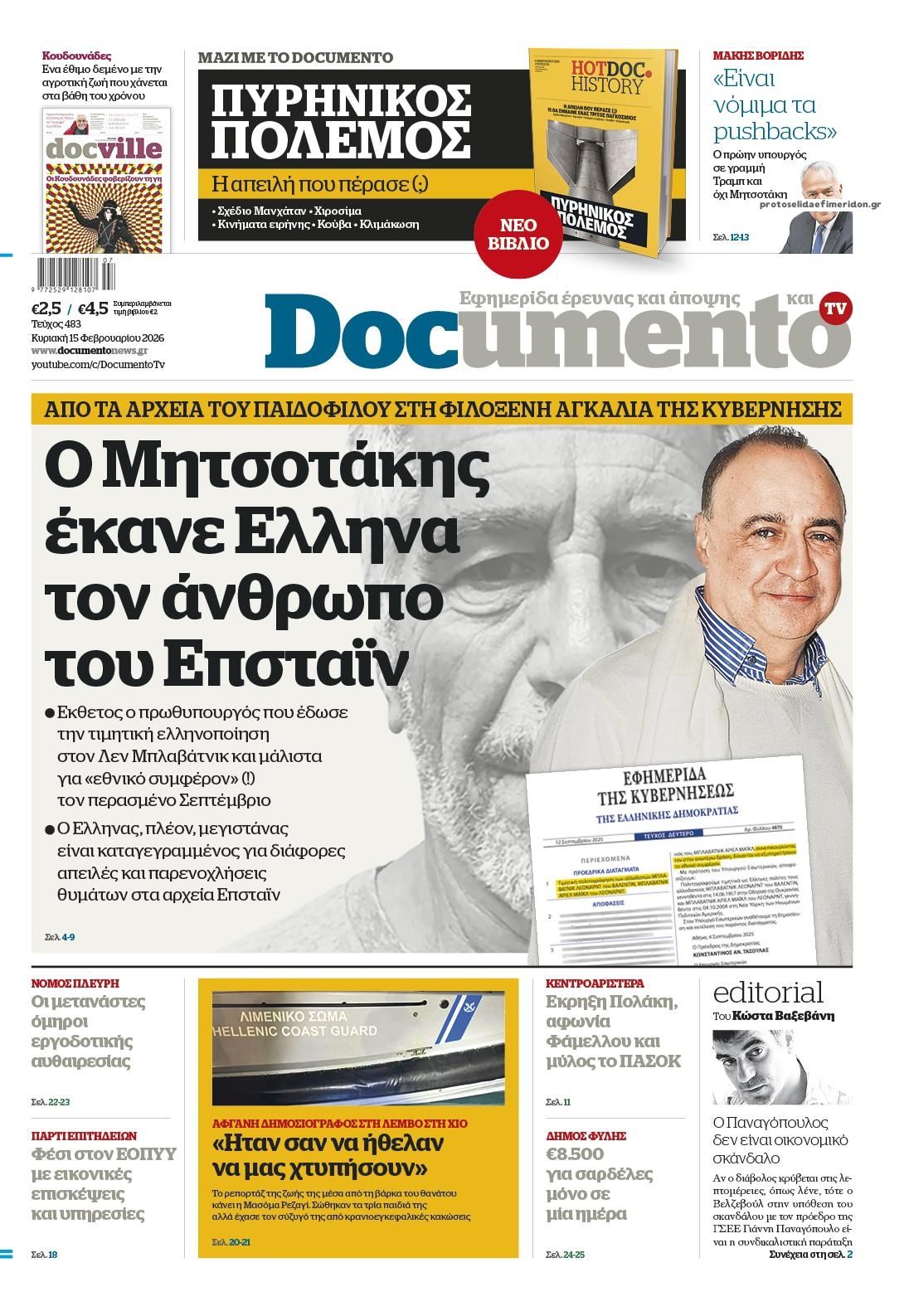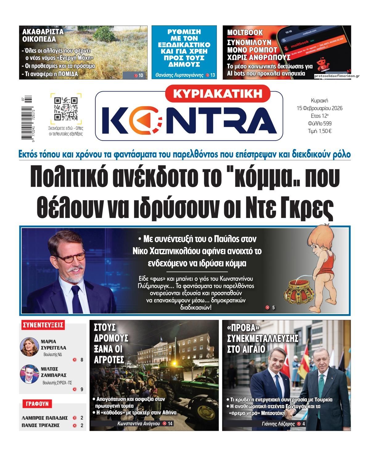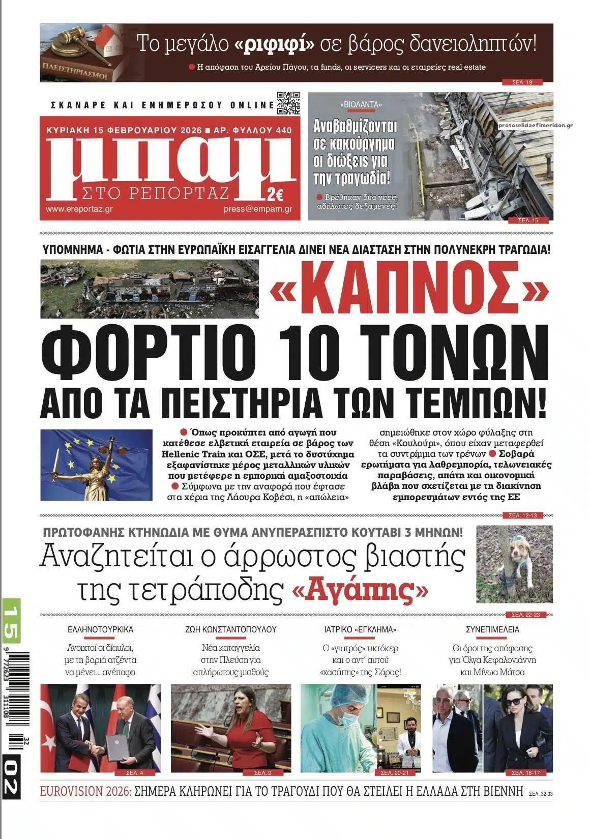 share Οι πολιτικές εφημερίδες 15/2/2026 δημοσιεύτηκε: 08:05 , 15 Φεβρουαρίου 2026 Επικαιρότητα Διαβάστε τα πρωτοσέλιδα από τις πολιτικές εφημερίδες, σήμερα 15/2/2026. #ΕΦΗΜΕΡΙΔΕΣ #ΠΟΛΙΤΙΚΕΣ ΕΦΗΜΕΡΙΔΕΣ #ΠΡΩΤΟΣΕΛΙΔΑ share Σχόλια Αναγνωστών σχολίασε και εσύ Ακολουθήστε το στο Google News και μάθετε πρώτοι όλες τις ειδήσεις Δείτε όλες τις τελευταίες Ειδήσεις από την Ελλάδα και τον Κόσμο στο Ροή Οικονομία Επιχειρήσεις Επικαιρότητα 2 ώρες πριν Αναδρομικά: Ποιοι θα πρέπει να πληρώσουν φόρο έως τις 27 Φεβρουαρίου στην Εφορία και ποιοι θα... 2 ώρες πριν Οι πολιτικές εφημερίδες 15/2/2026 11 ώρες πριν Νέες θέσεις στάθμευσης στο κέντρο της Αθήνας – Το σχέδιο του Δήμου 11 ώρες πριν Νέες θέσεις στάθμευσης στο κέντρο της Αθήνας – Το σχέδιο του Δήμου 11 ώρες πριν Επεκτείνεται το πρόγραμμα «Ανακαινίζω» – Τι ισχύει με τα εισοδηματικά κριτήρια 12 ώρες πριν Αγορά νεόδμητου ακινήτου: Τι πρέπει να προσέξετε πριν υπογράψετε – Τα 5 σημεία «κλειδιά» 3 ημέρες πριν Υπερταμείο: Στα 12 δισ. ευρώ το χαρτοφυλάκιο – Ποιες κινήσεις έγιναν το 2025 5 ημέρες πριν ΕΛΤΑ: Αυτά είναι τα πρώτα 11 καταστήματα που κατεβάζουν ρολά 5 ημέρες πριν Καστέλλι: Προκηρύχθηκε ο διαγωνισμός για τα συστήματα αεροναυτιλίας -Όλα όσα είπε ο Δήμας 2 ώρες πριν Οι πολιτικές εφημερίδες 15/2/2026 15 ώρες πριν ΚΥΑ για Στεγαστική Συνδρομή στους σεισμόπληκτους Ηρακλείου – Επισκευές με καθορισμένη τιμή ανά... 18 ώρες πριν Μητσοτάκης: Το κλίμα στη HORECA αποτυπώνει μια οικονομία που αναπτύσσεται και επιχειρηματίες που... ENIKOS NETWORK ΕΡΓΑΝΗ ΙΙ: Πρεμιέρα αύριο, 16 Φεβρουαρίου – Όλες οι αλλαγές που φέρνει για εργαζόμενους και επιχειρήσεις Τηλεθέαση (14/2): Τι νούμερα έκανε στην πρεμιέρα του το J2US Παιδικός καρκίνος: Ένα παιδί διαγιγνώσκεται με καρκίνο κάθε μέρα Λιπώδες ήπαρ: Τα 6 σιωπηρά συμπτώματα που οι περισσότεροι μπερδεύουν με κούραση Η Microsoft προειδοποιεί: Σταματήστε την απρόσμενη επανεκκίνηση του υπολογιστή σας Η σκοτεινή γοητεία της Villa De Vecchi: Η ιστορία και η κατασκευή της τρομακτικής έπαυλης περισσότερα 09:10 , 12 Ιανουαρίου 2026 || Καιρός: Χιόνια και πολικές θερμοκρασίες σήμερα – Η πρόγνωση της ΕΜΥ Έντονο κύμα ψύχους θα επικρατήσει στη χώρα τη Δευτέρα με χαμηλές θερμοκρασίες. Χιονοπτώσεις αναμέ... 09:03 , 8 Δεκεμβρίου 2025 || Καιρός: Ισχυρές βροχές και καταιγίδες στην Κρήτη σήμερα – Αναλυτική πρόγνωση ανά περιοχή Ισχυρές βροχές και καταιγίδες προβλέπονται σήμερα, Δευτέρα 8 Δεκεμβρίου 2025 στη βόρεια Κρήτη σύμ... 15:10 , 23 Νοεμβρίου 2025 || Αυτή την Κυριακή με τη Realnews: Δωροεπιταγή 10€ Δωροεπιταγή αξίας 10€ για αγορές άνω των 60€ από τα πολυκαταστήματα Factory Outlet. H προσφορά ισ... 09:40 , 23 Νοεμβρίου 2025 || Αυτή την Κυριακή με τη Realnews: Instyle, μαζί Drive Αυτή την Κυριακή με τη Realnews: Instyle, μαζί Drive Instyle Η Κατερίνα Παπουτσάκη, η Helena Bac... 17:49 , 24 Σεπτεμβρίου 2025 || Ελληνικές Υπεραγορές Σκλαβενίτης: Τι απαντά για το πρόστιμο ύψους 1,44 εκατ. ευρώ Ανακοίνωση εξέδωσε η “Ελληνικές Υπεραγορές Σκλαβενίτης” σχετικά με το πρόστιμο ύψους ... 10:16 , 21 Σεπτεμβρίου 2025 || Σήμερα με τη Realnews: Instyle – Μαζί Drive Σήμερα με τη Realnews: Instyle, μαζί Drive Instyle Η Andie MacDowell, η Renate Reinsve και ο Οδυ... 12:05 , 7 Σεπτεμβρίου 2025 || Σήμερα με τη Realnews: Απόκρυφες τελετές της Debra Bokur – Μαζί Real taste & style Αυτή την Κυριακή με τη Realnews: Απόκρυφες τελετές της Debra Bokur, μαζί Real taste & style. ... 22:08 , 30 Αυγούστου 2025 || Ξεκινά η κατασκευή του νέου αυτοκινητοδρόμου Ιωάννινα- Κακαβιά Μέχρι το τέλος του έτους ξεκινά η κατασκευή του νέου αυτοκινητοδρόμου Ιωάννινα-Κακαβιά που αποτελ... 07:30 , 24 Α