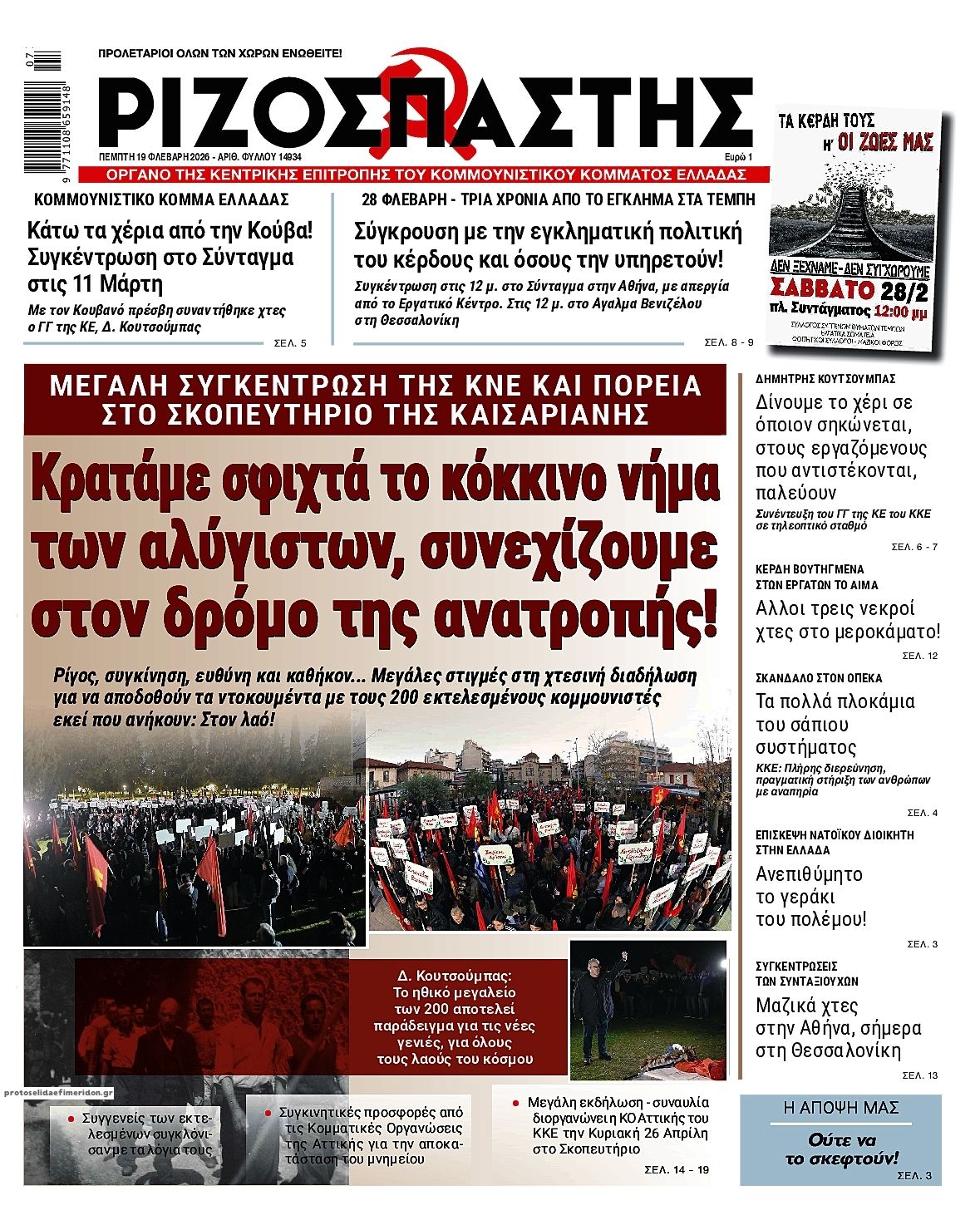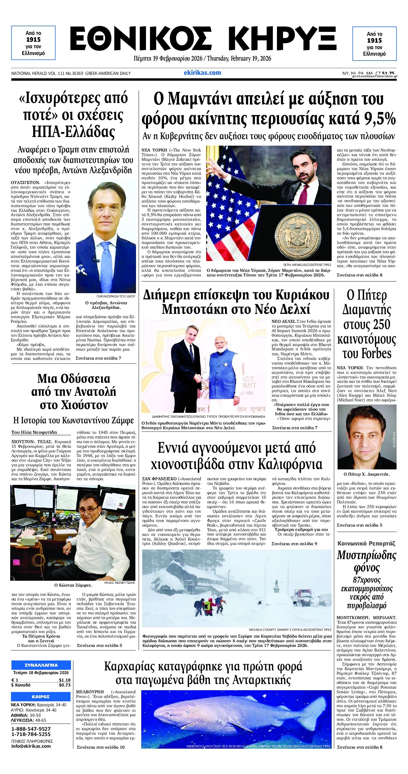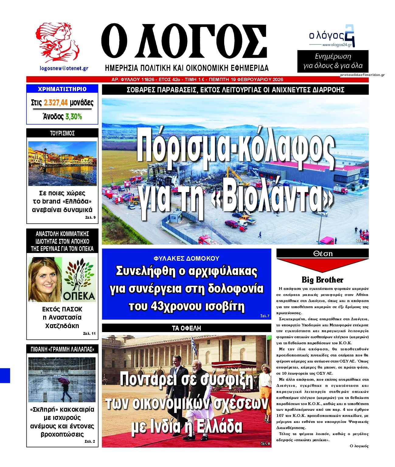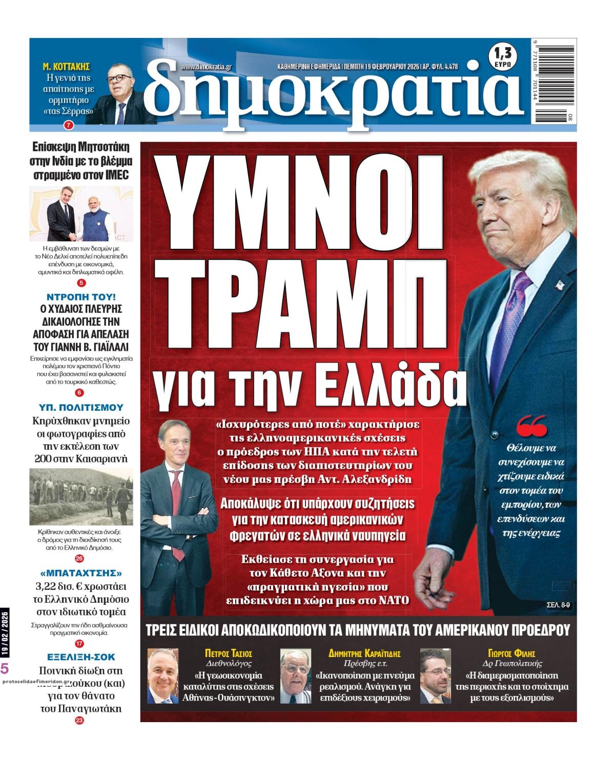 share Οι πολιτικές εφημερίδες 19/2/2026 δημοσιεύτηκε: 08:15 , 19 Φεβρουαρίου 2026 Επικαιρότητα Διαβάστε τα πρωτοσέλιδα από τις πολιτικές εφημερίδες, σήμερα 19/2/2026. #ΕΦΗΜΕΡΙΔΕΣ #ΠΟΛΙΤΙΚΕΣ ΕΦΗΜΕΡΙΔΕΣ #ΠΡΩΤΟΣΕΛΙΔΑ share Σχόλια Αναγνωστών σχολίασε και εσύ Ακολουθήστε το στο Google News και μάθετε πρώτοι όλες τις ειδήσεις Δείτε όλες τις τελευταίες Ειδήσεις από την Ελλάδα και τον Κόσμο στο Ροή Οικονομία Επιχειρήσεις Επικαιρότητα 31 λεπτά πριν ΑΑΔΕ: Τι αλλάζει στον φορολογικό έλεγχο των ηλεκτρονικών «πορτοφολιών» και ξένων τραπεζών 1 ώρα πριν e-ΕΦΚΑ και ΔΥΠΑ: Ολοκληρώνεται αύριο το μπαράζ πληρωμών – Ποιοι θα δουν χρήματα στους... 2 ώρες πριν Ελβετικό φράγκο: Άνοιξε η πλατφόρμα για τη ρύθμιση των δανείων – Ερωτήσεις και απαντήσεις 31 λεπτά πριν ΑΑΔΕ: Τι αλλάζει στον φορολογικό έλεγχο των ηλεκτρονικών «πορτοφολιών» και ξένων τραπεζών 4 ώρες πριν Επιδοτήσεις για την αύξηση της παραγωγής: Πότε θα ξεκινήσουν οι αιτήσεις από τις μικρομεσαίες... 16 ώρες πριν Δικαστική απόφαση – “σταθμός” βάζει… STOP στο τηλεφωνικό μάρκετινγκ – Τι αναφέρει η... 15 ώρες πριν Τράπεζα Κύπρου: Κέρδη μετά φόρων 481 εκατ. ευρώ για το 2025 4 ημέρες πριν Nέα εποχή για την ελληνική αμυντική βιομηχανία – Σε ποιους τομείς επικεντρώνεται το ενδιαφέρον... 7 ημέρες πριν Υπερταμείο: Στα 12 δισ. ευρώ το χαρτοφυλάκιο – Ποιες κινήσεις έγιναν το 2025 1 ημέρα πριν Συνεχίζεται η απεργία των ταξί στην Αττική: Άκαρπη η συνάντηση με τον Κυρανάκη – Χειρόφρενο... 2 ημέρες πριν Βελόπουλος: Ξαφνικά η κυβέρνηση θυμήθηκε τη μείωση του ΦΠΑ γιατί μυρίζουν εκλογές 2 ημέρες πριν Σταθερές ευρυζωνικές συνδέσεις: Άνοδο καταγράφει η Ελλάδα στην παγκόσμια κατάταξη ταχύτητας ENIKOS NETWORK Χανιά: Συναγερμός έπειτα από την εξαφάνιση 52χρονου – Έφυγε από το σπίτι του χωρίς κινητό «Βιολάντα:» «Είναι προφανές ότι λόγω της πίεσης της κοινής γνώμης, πάρθηκε η απόφαση προφυλάκισης» – Τι λέει ο δικηγόρος το... ECDC: Συναγερμός για τη μικροβιακή αντοχή στην Ελλάδα Χλωμό δέρμα και φτερούγισμα στην καρδιά: Πότε μπορεί να είναι συμπτώματα έλλειψης σιδήρου Νέα απειλή για τα Android κινητά – Χιλιάδες συσκευές έχουν ήδη μολυνθεί Λάθος του GPS οδήγησε βαν της Amazon σε πεδίο βολής του Στρατού περισσότερα 09:10 , 12 Ιανουαρίου 2026 || Καιρός: Χιόνια και πολικές θερμοκρασίες σήμερα – Η πρόγνωση της ΕΜΥ Έντονο κύμα ψύχους θα επικρατήσει στη χώρα τη Δευτέρα με χαμηλές θερμοκρασίες. Χιονοπτώσεις αναμέ... 09:03 , 8 Δεκεμβρίου 2025 || Καιρός: Ισχυρές βροχές και καταιγίδες στην Κρήτη σήμερα – Αναλυτική πρόγνωση ανά περιοχή Ισχυρές βροχές και καταιγίδες προβλέπονται σήμερα, Δευτέρα 8 Δεκεμβρίου 2025 στη βόρεια Κρήτη σύμ... 15:10 , 23 Νοεμβρίου 2025 || Αυτή την Κυριακή με τη Realnews: Δωροεπιταγή 10€ Δωροεπιταγή αξίας 10€ για αγορές άνω των 60€ από τα πολυκαταστήματα Factory Outlet. H προσφορά ισ... 09:40 , 23 Νοεμβρίου 2025 || Αυτή την Κυριακή με τη Realnews: Instyle, μαζί Drive Αυτή την Κυριακή με τη Realnews: Instyle, μαζί Drive Instyle Η Κατερίνα Παπουτσάκη, η Helena Bac... 17:49 , 24 Σεπτεμβρίου 2025 || Ελληνικές Υπεραγορές Σκλαβενίτης: Τι απαντά για το πρόστιμο ύψους 1,44 εκατ. ευρώ Ανακοίνωση εξέδωσε η “Ελληνικές Υπεραγορές Σκλαβενίτης” σχετικά με το πρόστιμο ύψους ... 10:16 , 21 Σεπτεμβρίου 2025 || Σήμερα με τη Realnews: Instyle – Μαζί Drive Σήμερα με τη Realnews: Instyle, μαζί Drive Instyle Η Andie MacDowell, η Renate Reinsve και ο Οδυ... 12:05 , 7 Σεπτεμβρίου 2025 || Σήμερα με τη Realnews: Απόκρυφες τελετές της Debra Bokur – Μαζί Real taste & style Αυτή την Κυριακή με τη Realnews: Απόκρυφες τελετές της Debra Bokur, μαζί Real taste & style. ... 22:08 , 30 Αυγ