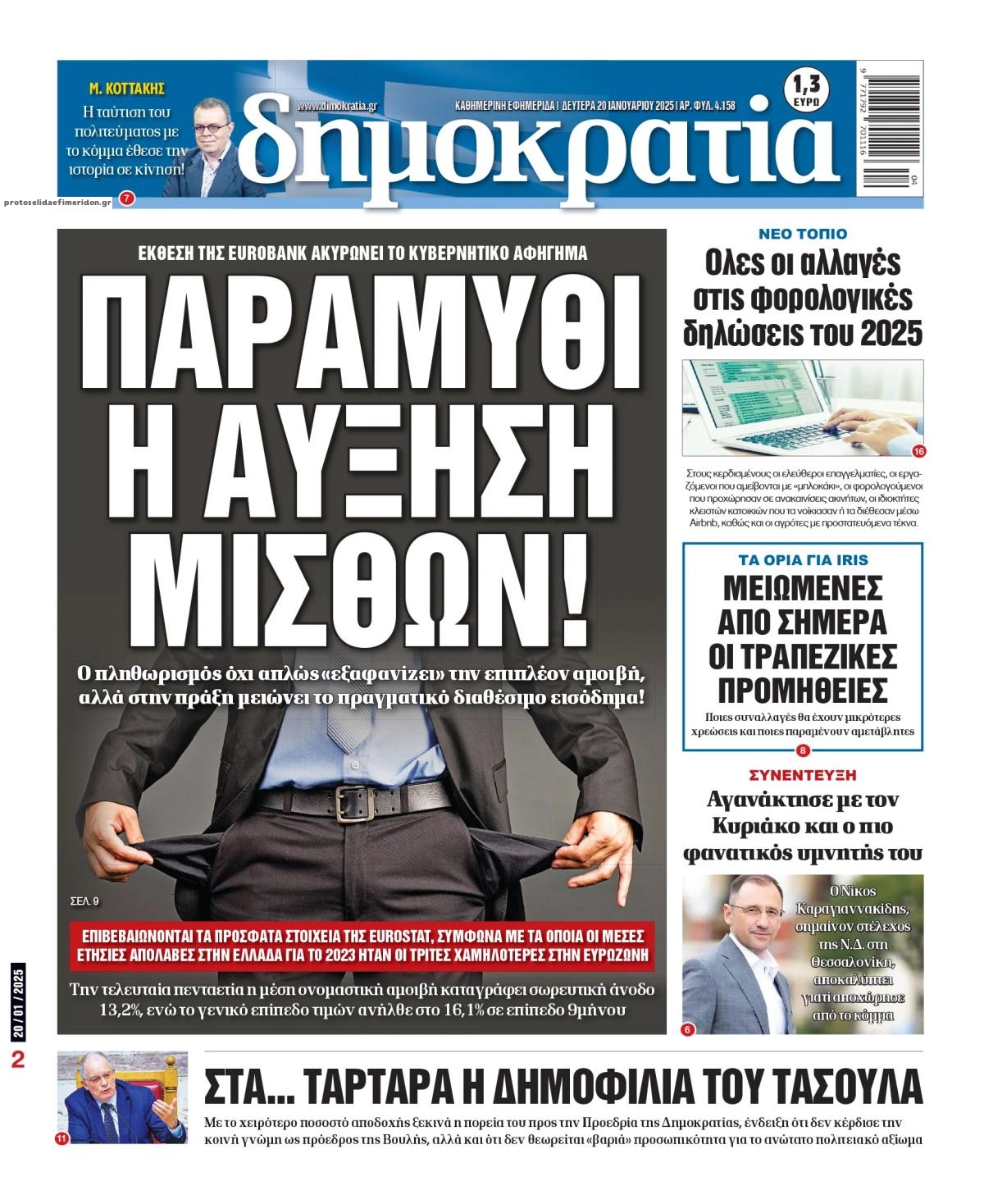 share Οι πολιτικές εφημερίδες 20/1/2025 δημοσιεύτηκε: 08:56 , 20 Ιανουαρίου 2025 Επικαιρότητα Διαβάστε τα πρωτοσέλιδα από τις πολιτικές εφημερίδες, σήμερα 20/1/2025. #ΠΟΛΙΤΙΚΕΣ ΕΦΗΜΕΡΙΔΕΣ #ΠΡΩΤΟΣΕΛΙΔΑ share Πρωτοβουλίες του ΣΥΡΙΖΑ για τον τραπεζικό τομέα – Οι συναντήσεις του Σωκράτη Φάμελλου ΑΑΔΕ: Μπαράζ ελέγχων για αόρατα POS, τυφλές ταμειακές και «φτωχούς» influencers – Τι είπε ο Πιτσιλής Aκτοπλοϊκά εισιτήρια: Πού αναμένονται οι μεγαλύτερες αυξήσεις Σχόλια Αναγνωστών σχολίασε και εσύ Ακολουθήστε το στο Google News και μάθετε πρώτοι όλες τις ειδήσεις Δείτε όλες τις τελευταίες Ειδήσεις από την Ελλάδα και τον Κόσμο στο Ροή Οικονομία Επιχειρήσεις Επικαιρότητα 18 λεπτά πριν Κλιμάκωση των κινητοποιήσεων αποφάσισαν οι αγρότες, κλείνουν παρακαμπτήριους την Παρασκευή –... 48 λεπτά πριν Ευλογιά αιγοπροβάτων: Νέες αποζημιώσεις ύψους 26,02 εκατ. ευρώ σε κτηνοτρόφους – Η κατανομή ανά... 1 ώρα πριν Προσλήψεις σε Δήμο: Ποιοι μπορούν να κάνουν αίτηση έως αύριο – Οι ειδικότητες 1 ώρα πριν Προσλήψεις σε Δήμο: Ποιοι μπορούν να κάνουν αίτηση έως αύριο – Οι ειδικότητες 2 ώρες πριν Αμετάβλητα για τέταρτη συνεχόμενη φορά τα επιτόκια της ΕΚΤ – Ποιες είναι οι προβλέψεις για τον... 2 ώρες πριν Επιτροπή Ανταγωνισμού: Τι αποκαλύπτουν τα στοιχεία της έκθεσης για τα επιτόκια στις προθεσμιακές 2 εβδομάδες πριν Πετραλιάς: Έρχεται ρύθμιση για τα παρακρατηθέντα 13 εκατ. ευρώ των εργαζομένων της ΕΝΑΕ 2 εβδομάδες πριν ΑΔΜΗΕ για ηλεκτρικές διασυνδέσεις Δωδεκανήσων και Βορείου Αιγαίου: Αυτά είναι τα οφέλη 3 εβδομάδες πριν ΕΛΤΑ: «Όχι» στο ενδεχόμενο παραχώρησης των Κέντρων Διαλογής σε ιδιώτες λένε οι εργαζόμενοι 9 ώρες πριν Την Κυριακή με τη Realnews: Δωροεπιταγή 10€ 1 ημέρα πριν Έρευνα MRB: Η πρόθεση ψήφου και τα σημαντικότερα προβλήματα των πολιτών 1 ημέρα πριν Λεωφορεία: Στάση εργασίας πραγματοποιούν σήμερα οι εργαζόμενοι-Δείτε τις ώρες ENIKOS NETWORK ΕΕ: Καλεί τα Σκόπια να σέβονται τις δεσμεύσεις από τη διαδικασία ένταξης και το Διεθνές Δίκαιο – Η χρηματοδότηση του Διαδρό... Σοκ στη Σουηδία: 12χρονος πληρωμένος δολοφόνος σκότωσε λάθος άτομο Ξεκίνησε η «επέλαση» της γρίπης στην Ελλάδα-Ποιοι κινδυνεύουν ΕΟΔΥ: Δωρεάν τεστ για HIV, Ηπατίτιδες, Σύφιλη, Χλαμύδια, Γονόρροια Σπαζοκεφαλιά: Βρες τη φράουλα στην εικόνα σε 4 δευτερόλεπτα Τεστ IQ: Μπορείτε να διορθώσετε την παρακάτω εξίσωση μετακινώντας ένα μόλις βέλος σε 20 δευτερόλεπτα; περισσότερα 09:03 , 8 Δεκεμβρίου 2025 || Καιρός: Ισχυρές βροχές και καταιγίδες στην Κρήτη σήμερα – Αναλυτική πρόγνωση ανά περιοχή Ισχυρές βροχές και καταιγίδες προβλέπονται σήμερα, Δευτέρα 8 Δεκεμβρίου 2025 στη βόρεια Κρήτη σύμ... 15:10 , 23 Νοεμβρίου 2025 || Αυτή την Κυριακή με τη Realnews: Δωροεπιταγή 10€ Δωροεπιταγή αξίας 10€ για αγορές άνω των 60€ από τα πολυκαταστήματα Factory Outlet. H προσφορά ισ... 09:40 , 23 Νοεμβρίου 2025 || Αυτή την Κυριακή με τη Realnews: Instyle, μαζί Drive Αυτή την Κυριακή με τη Realnews: Instyle, μαζί Drive Instyle Η Κατερίνα Παπουτσάκη, η Helena Bac... 17:49 , 24 Σεπτεμβρίου 2025 || Ελληνικές Υπεραγορές Σκλαβενίτης: Τι απαντά για το πρόστιμο ύψους 1,44 εκατ. ευρώ Ανακοίνωση εξέδωσε η “Ελληνικές Υπεραγορές Σκλαβενίτης” σχετικά με το πρόστιμο ύψους ... 10:16 , 21 Σεπτεμβρίου 2025 || Σήμερα με τη Realnews: Instyle – Μαζί Drive Σήμερα με τη Realnews: Instyle, μαζί Drive Instyle Η Andie MacDowell, η Renate Reinsve και ο Οδυ... 12:05 , 7 Σεπτεμβρίου 2025 || Σήμερα με τη Realnews: Απόκρυφες τελετές της Debra Bokur – Μαζί Real taste & style Αυτή την Κυριακή με τη Realnews: Απόκρυφες τελετές της Debra Bokur, μαζί Real taste & style. ... 22:08 , 30 Αυ