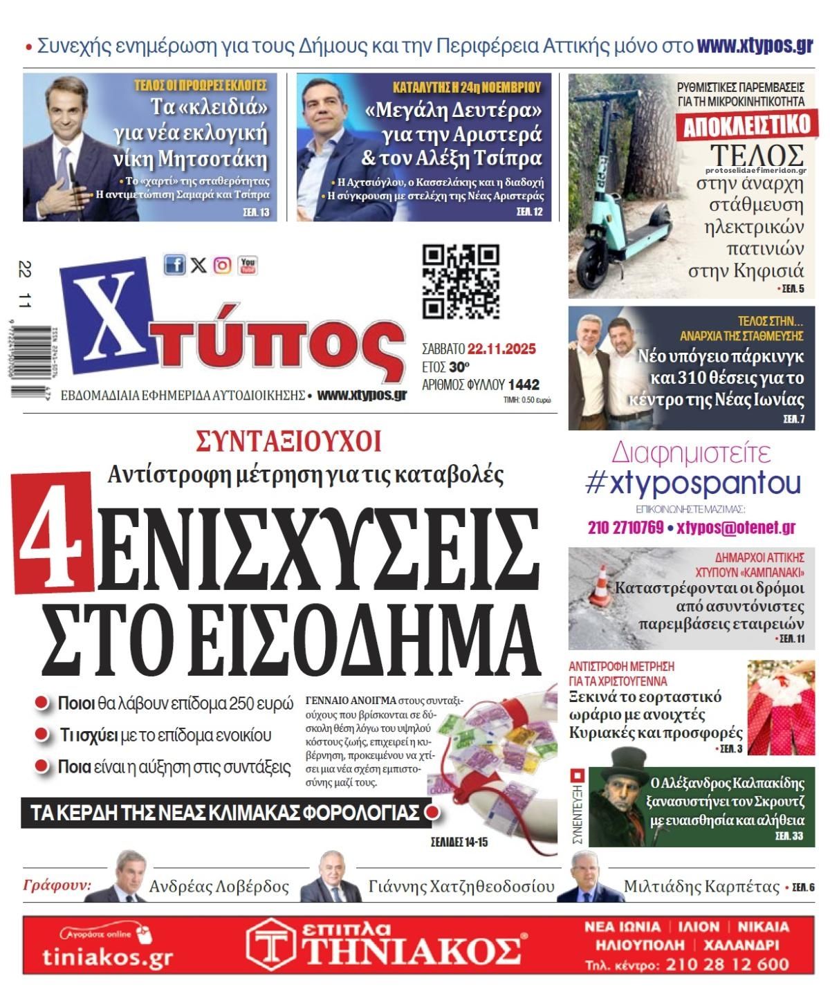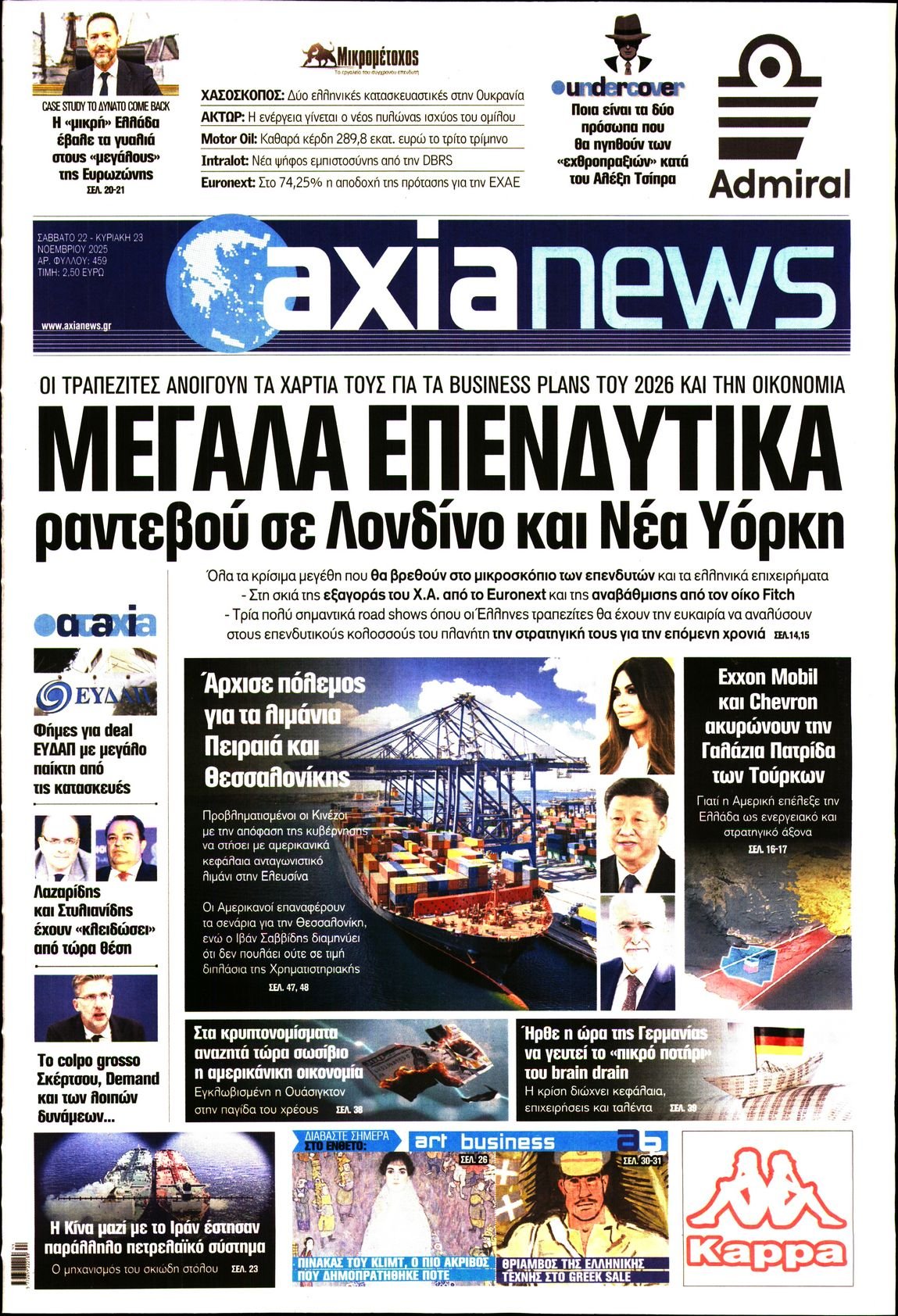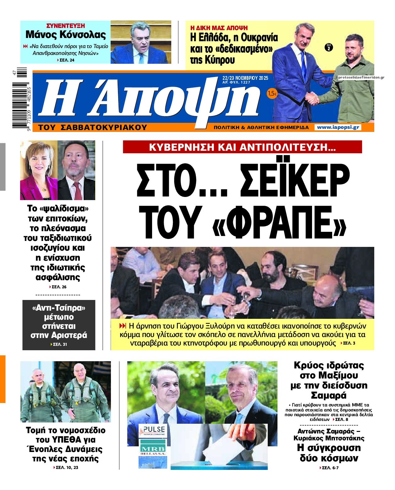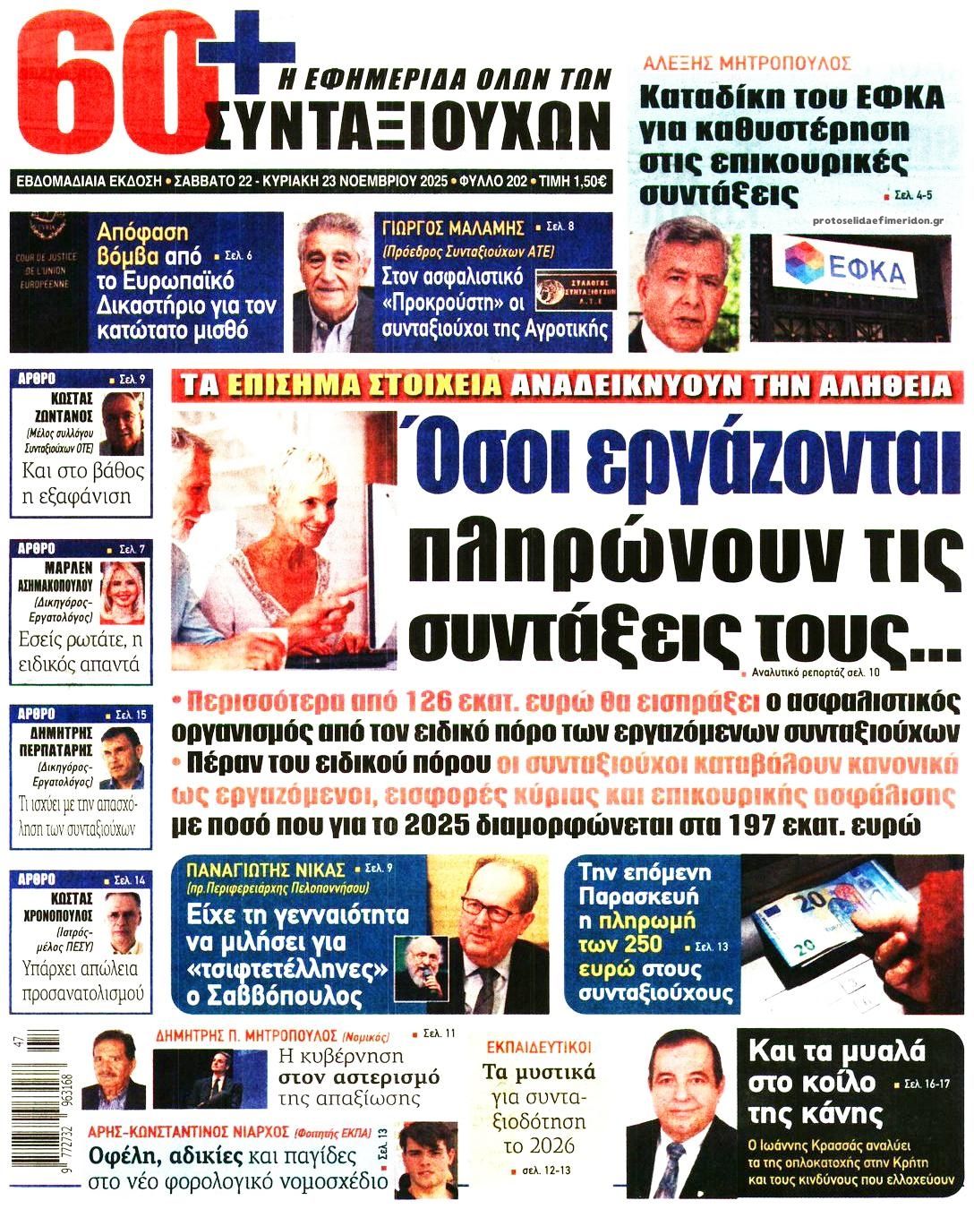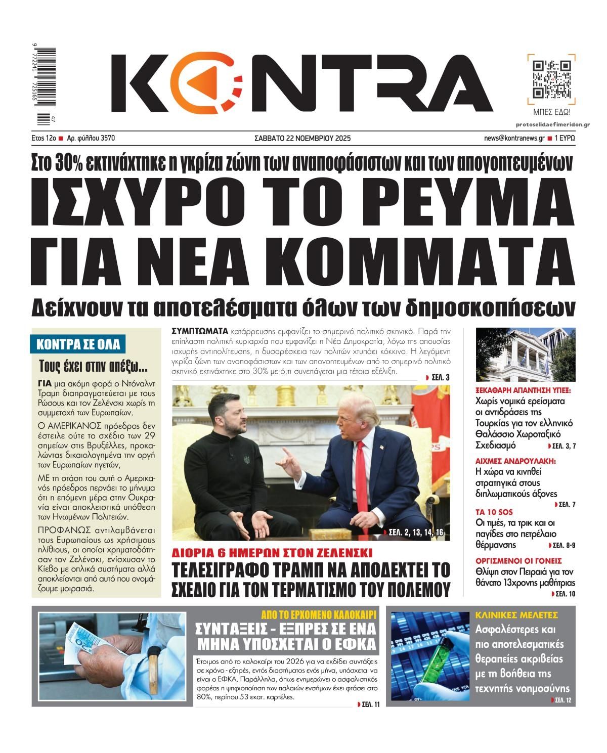 Διαβάστε τα πρωτοσέλιδα από τις πολιτικές εφημερίδες, σήμερα 22/11/2025.