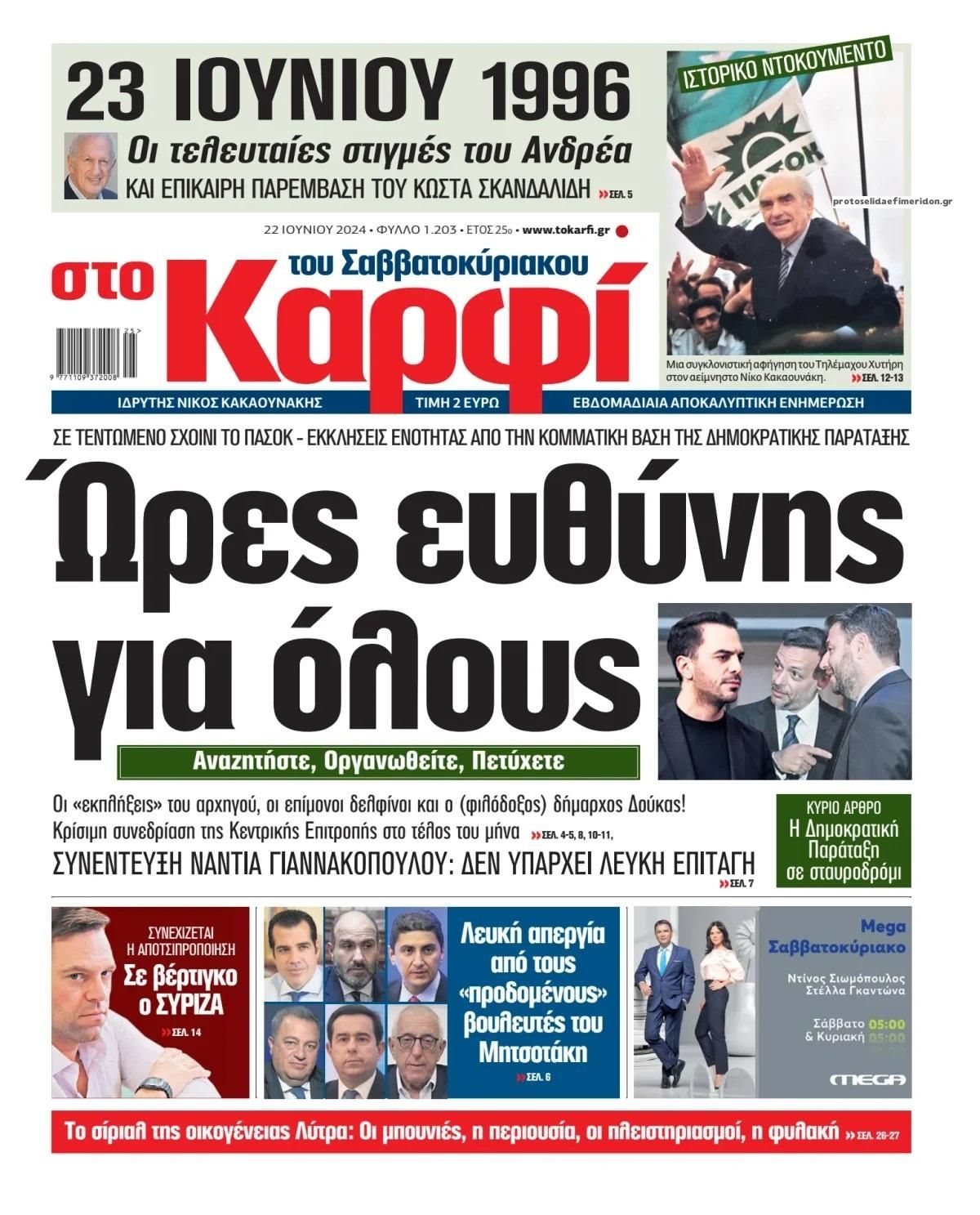 Διαβάστε τα πρωτοσέλιδα από τις πολιτικές εφημερίδες, σήμερα 22/6/2024.
