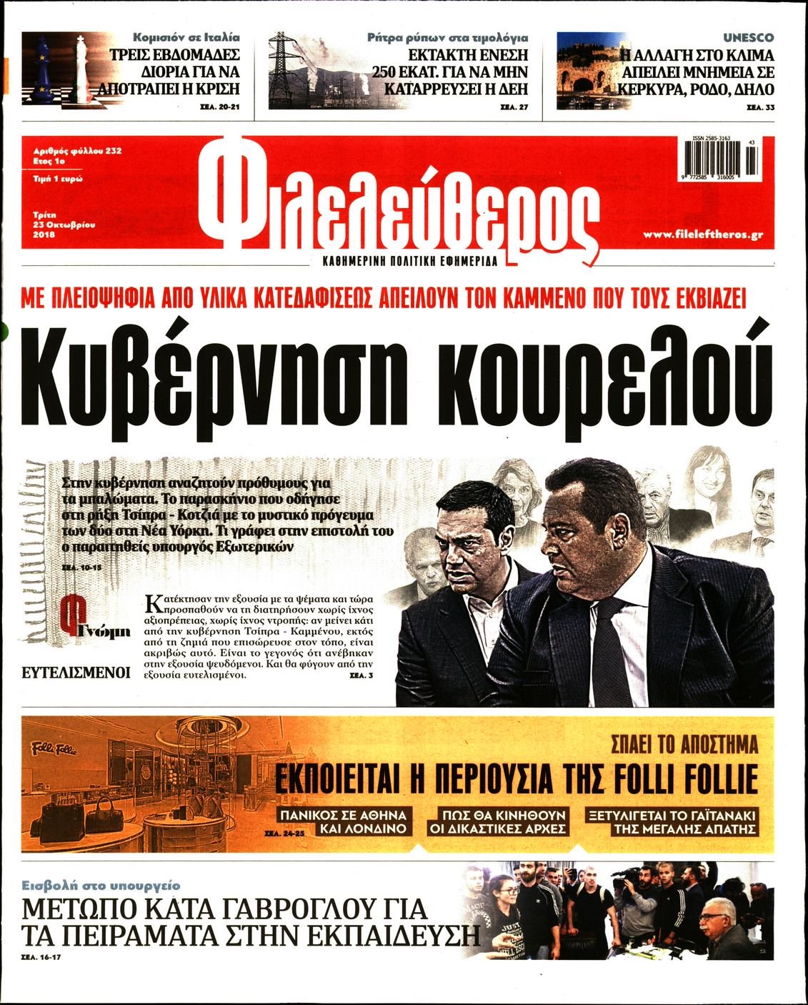 share Οι πολιτικές εφημερίδες 23/10/18 δημοσιεύτηκε: 07:47 , 23 Οκτωβρίου 2018 Επικαιρότητα Διαβάστε τα πρωτοσέλιδα των πολιτικών εφημερίδων #ΠΟΛΙΤΙΚΕΣ ΕΦΗΜΕΡΙΔΕΣ share Σχόλια Αναγνωστών σχολίασε και εσύ Ακολουθήστε το στο Google News και μάθετε πρώτοι όλες τις ειδήσεις Δείτε όλες τις τελευταίες Ειδήσεις από την Ελλάδα και τον Κόσμο στο Ροή Οικονομία Επιχειρήσεις Επικαιρότητα 3 λεπτά πριν Βουλή: Σήμερα η ψήφιση του προϋπολογισμού με τα νέα μέτρα για τη στέγη – Ποιοι είναι οι... 21 λεπτά πριν Επιδόματα της ΔΥΠΑ και Δώρο Χριστουγέννων: Από αύριο η προπληρωμή τους 1 ώρα πριν Προϋπολογισμός 2026: Η ομιλία Μητσοτάκη στη Βουλή- Τι θα πει για το αγροτικό, το στεγαστικό και το... 3 λεπτά πριν Βουλή: Σήμερα η ψήφιση του προϋπολογισμού με τα νέα μέτρα για τη στέγη – Ποιοι είναι οι... 21 λεπτά πριν Επιδόματα της ΔΥΠΑ και Δώρο Χριστουγέννων: Από αύριο η προπληρωμή τους 1 ώρα πριν Προϋπολογισμός 2026: Η ομιλία Μητσοτάκη στη Βουλή- Τι θα πει για το αγροτικό, το στεγαστικό και το... 2 εβδομάδες πριν Πετραλιάς: Έρχεται ρύθμιση για τα παρακρατηθέντα 13 εκατ. ευρώ των εργαζομένων της ΕΝΑΕ 2 εβδομάδες πριν ΑΔΜΗΕ για ηλεκτρικές διασυνδέσεις Δωδεκανήσων και Βορείου Αιγαίου: Αυτά είναι τα οφέλη 3 εβδομάδες πριν ΕΛΤΑ: «Όχι» στο ενδεχόμενο παραχώρησης των Κέντρων Διαλογής σε ιδιώτες λένε οι εργαζόμενοι 18 ώρες πριν Τσιάρας: Καλούμε άμεσα τους εκπροσώπους των αγροτών σε ουσιαστικό διάλογο – Υπάρχουν περιθώρια,... 21 ώρες πριν Πανελλαδικές Εξετάσεις 2026: Αυτό είναι το νέο ηλικιακό όριο εισαγωγής στις Σχολές της Αστυνομίας 23 ώρες πριν Μετρό: Ποιοι σταθμοί θα κλείσουν σήμερα και αύριο νωρίτερα ENIKOS NETWORK Σταματίνα Τσιμτσιλή για την καταγγελία σε γνωστό τραγουδιστή: «Ρίχνουμε λάσπη χωρίς να έχει γίνει καταγγελία…» Live streaming – Ο Μάκης Βορίδης στο στούντιο του Realfm 97,8 σε μια εφ’ όλης της ύλης συνέντευξη στον Νίκο Χατζηνικολάου Οι ρίζες της άνοιας ίσως βρίσκονται στην παιδική ηλικία – Τι έδειξαν πρόσφατες μελέτες Όμιλος ΠΡΟΣΥΦΑΠΕ: Επιστρέφει στην κοινωνία τμήμα της υπεραξίας που παράγει Χρήστες Microsoft «αναβάθμισαν κατά λάθος» σε Windows 11 – «Μην κάνετε κλικ» Ρωσικός «ραδιοφωνικός σταθμός καταστροφής» στέλνει σειρά απειλητικών μηνυμάτων – Αυξάνονται οι φόβοι για Γ’ Παγκόσμιο Πόλεμ... περισσότερα 17:08 , 15 Δεκεμβρίου 2025 || Τσιάρας: Καλούμε άμεσα τους εκπροσώπους των αγροτών σε ουσιαστικό διάλογο – Υπάρχουν περιθώρια, η κοινωνία περιμένει υπευθυνότητα Ορισμένα από τα αιτήματα που θέτουν οι αγρότες είναι δίκαια και αντανακλούν τις πιέσεις που δέχετ... 14:38 , 15 Δεκεμβρίου 2025 || Επικαιρότητα Πανελλαδικές Εξετάσεις 2026: Αυτό είναι το νέο ηλικιακό όριο εισαγωγής στις Σχολές της Αστυνομίας Αλλάζει το ηλικιακό όριο εισαγωγής στις Σχολές της Αστυνομίας μέσω του συστήματος των πανελλαδικώ... 12:03 , 15 Δεκεμβρίου 2025 || Επικαιρότητα Μετρό: Ποιοι σταθμοί θα κλείσουν σήμερα και αύριο νωρίτερα Νωρίτερα από την ώρα που προβλέπει το υφιστάμενο πρόγραμμα θα κλείσουν σήμερα, Δευτέρα 15 Δεκεμβρ... 10:12 , 15 Δεκεμβρίου 2025 || Επικαιρότητα Την Κυριακή με τη Realnews: Ό,τι και αν αγοράσεις, σκανάρεις και κερδίζεις! Την Κυριακή με τη Realnews: Ό,τι και αν αγοράσεις, σκανάρεις και κερδίζεις! Με το PADU app, το κο... 21:21 , 14 Δεκεμβρίου 2025 || Επικαιρότητα Χωρίς λεωφορεία η Αθήνα την Τετάρτη για έξι ώρες Στάση εργασίας ανακοίνωσαν για την Τετάρτη 17 Δεκεμβρίου 2025 από τις 11:00 έως τις 17:00 οι εργα... 20:00 , 14 Δεκεμβρίου 2025 || Επικαιρότητα Καιρός: Γενικά αίθριος με κανονικές για