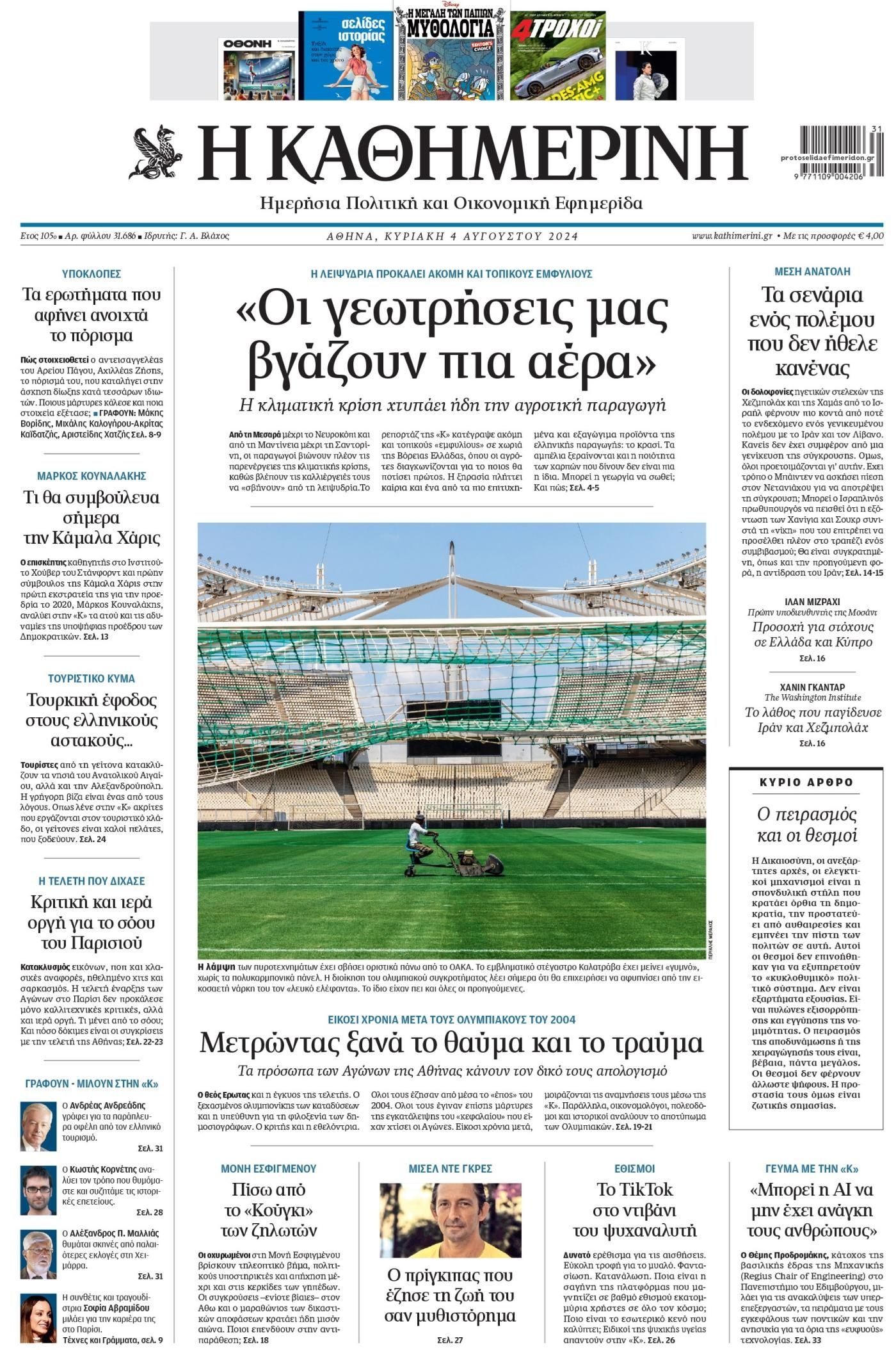 Διαβάστε τα πρωτοσέλιδα από τις πολιτικές εφημερίδες, σήμερα 4/8/2024.