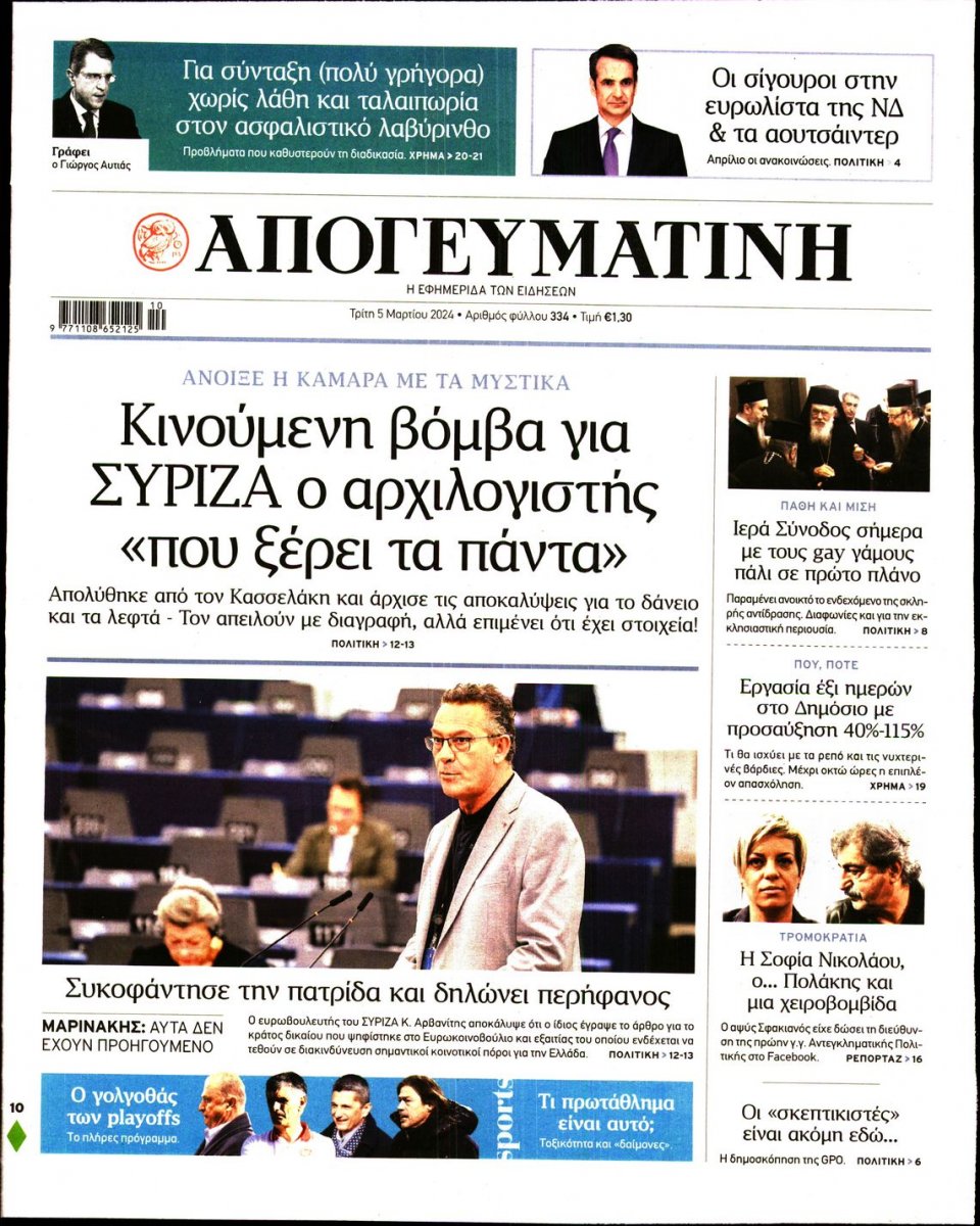 share Οι πολιτικές εφημερίδες 5/3/2024 δημοσιεύτηκε: 08:22 , 5 Μαρτίου 2024 Επικαιρότητα Διαβάστε τα πρωτοσέλιδα από τις πολιτικές εφημερίδες, σήμερα 5/3/2024. #ΕΦΗΜΕΡΙΔΕΣ #ΠΟΛΙΤΙΚΕΣ ΕΦΗΜΕΡΙΔΕΣ #ΠΡΩΤΟΣΕΛΙΔΑ share Οι πολιτικές εφημερίδες 4/3/2024 Οι πολιτικές εφημερίδες 3/3/2024 Οι πολιτικές εφημερίδες 2/3/2024 Σχόλια Αναγνωστών σχολίασε και εσύ Ακολουθήστε το στο Google News και μάθετε πρώτοι όλες τις ειδήσεις Δείτε όλες τις τελευταίες Ειδήσεις από την Ελλάδα και τον Κόσμο στο Ροή Οικονομία Επιχειρήσεις Επικαιρότητα 38 λεπτά πριν e- ΕΦΚΑ και ΔΥΠΑ: Ο «χάρτης» των πληρωμών έως και τις 19 Δεκεμβρίου 3 ώρες πριν Εθνικό Μητρώο Παροχών και Ενισχύσεων: Ποιες αλλαγές έρχονται και πώς θα λειτουργεί 13 ώρες πριν Voucher 200 ευρώ: Ποιοι και πώς θα το λάβουν – Οι καταληκτικές ημερομηνίες για τις αιτήσεις και την... 13 ώρες πριν Voucher 200 ευρώ: Ποιοι και πώς θα το λάβουν – Οι καταληκτικές ημερομηνίες για τις αιτήσεις και την... 18 ώρες πριν Aνοίγουν στις 22 Δεκεμβρίου αιτήσεις για μεταποίηση προϊόντων αλιείας και υδατοκαλλιέργειας 24 ώρες πριν Τέλος η «ομηρία» από χρέη – Απαλλαγή από ποινικές διώξεις και διπλή ρύθμιση – ανάσα για... 1 εβδομάδα πριν Πετραλιάς: Έρχεται ρύθμιση για τα παρακρατηθέντα 13 εκατ. ευρώ των εργαζομένων της ΕΝΑΕ 1 εβδομάδα πριν ΑΔΜΗΕ για ηλεκτρικές διασυνδέσεις Δωδεκανήσων και Βορείου Αιγαίου: Αυτά είναι τα οφέλη 3 εβδομάδες πριν ΕΛΤΑ: «Όχι» στο ενδεχόμενο παραχώρησης των Κέντρων Διαλογής σε ιδιώτες λένε οι εργαζόμενοι 16 ώρες πριν Στάση εργασίας στα λεωφορεία την Τετάρτη – Ποια δρομολόγια θα εκτελούνται κανονικά 20 ώρες πριν Με κινητοποιήσεις προειδοποιούν την κυβέρνηση οι αυτοκινητιστές – Ζητούν συνάντηση 20 ώρες πριν Η Realnews που κυκλοφορεί σήμερα ENIKOS NETWORK Πάτρα: Νέες κινητοποιήσεις αγροτών και κτηνοτρόφων – Πού υπάρχουν μπλόκα στη Δυτική Ελλάδα Η γη της ελιάς: Η αρχή του τέλους του Δημοσθένη πλησιάζει «Πίσω από τις ειδήσεις υπάρχουν άνθρωποι»- Η υπόθεση του δότη σπέρματος και το όριο της ενημέρωσης Η «βρώμικη» αλήθεια για τον στεγνωτήρα χεριών: Πώς διασπείρει τα μικρόβια αντί να τα εξαλείφει, σύμφωνα με το Κλίβελαντ Οι αρχές προειδοποιούν χρήστες Google Chrome και Microsoft Edge – Οι επιθέσεις έχουν ξεκινήσει Αλιγάτορας εισέβαλε σε κατάστημα στη Φλόριντα και προκάλεσε πανικό περισσότερα 09:03 , 8 Δεκεμβρίου 2025 || Καιρός: Ισχυρές βροχές και καταιγίδες στην Κρήτη σήμερα – Αναλυτική πρόγνωση ανά περιοχή Ισχυρές βροχές και καταιγίδες προβλέπονται σήμερα, Δευτέρα 8 Δεκεμβρίου 2025 στη βόρεια Κρήτη σύμ... 15:10 , 23 Νοεμβρίου 2025 || Αυτή την Κυριακή με τη Realnews: Δωροεπιταγή 10€ Δωροεπιταγή αξίας 10€ για αγορές άνω των 60€ από τα πολυκαταστήματα Factory Outlet. H προσφορά ισ... 09:40 , 23 Νοεμβρίου 2025 || Αυτή την Κυριακή με τη Realnews: Instyle, μαζί Drive Αυτή την Κυριακή με τη Realnews: Instyle, μαζί Drive Instyle Η Κατερίνα Παπουτσάκη, η Helena Bac... 17:49 , 24 Σεπτεμβρίου 2025 || Ελληνικές Υπεραγορές Σκλαβενίτης: Τι απαντά για το πρόστιμο ύψους 1,44 εκατ. ευρώ Ανακοίνωση εξέδωσε η “Ελληνικές Υπεραγορές Σκλαβενίτης” σχετικά με το πρόστιμο ύψους ... 10:16 , 21 Σεπτεμβρίου 2025 || Σήμερα με τη Realnews: Instyle – Μαζί Drive Σήμερα με τη Realnews: Instyle, μαζί Drive Instyle Η Andie MacDowell, η Renate Reinsve και ο Οδυ... 12:05 , 7 Σεπτεμβρίου 2025 || Σήμερα με τη Realnews: Απόκρυφες τελετές της Debra Bokur – Μαζί Real taste & style Αυτή την Κυριακή με τη Realnews: Απόκρυφες τελετές της Debra Bokur, μαζί Real taste & style. ... 22:08 , 30 Αυγούστου 2025 || Ξεκινά η κατασκευή του νέου αυτοκινητοδρόμου Ιωάννινα- Κακαβιά Μέχρι το τέλος του έτους ξεκινά η κατασκευ