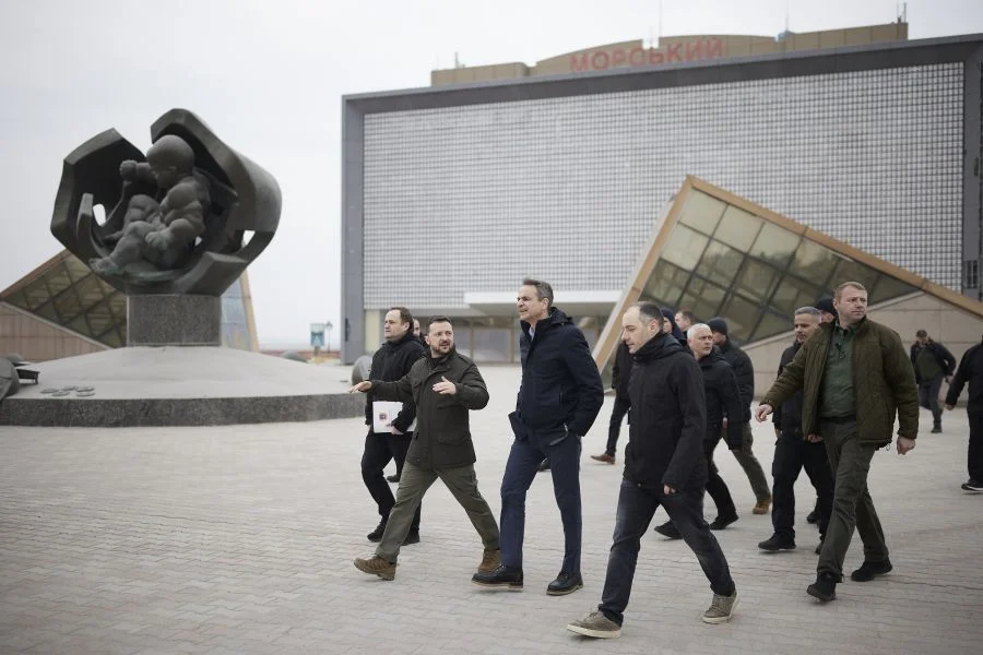 Η επίσκεψη ήταν αιφνίδια αλλά αναμενόταν εδώ και μήνες. Ο κ. Μητσοτάκης συναντήθηκε με τον Ουκρανό Πρόεδρο, Βολοντίμιρ Ζελένσκι και απέτισε φόρο τιμής στο σημείο όπου πριν από λίγες ημέρες έχασαν τραγικά τη ζωή τους 12 πολίτες (μεταξύ τους και 5 μικρά παιδιά) ως αποτέλεσμα χτυπήματος ρωσικού μη επανδρωμένου αεροσκάφους.